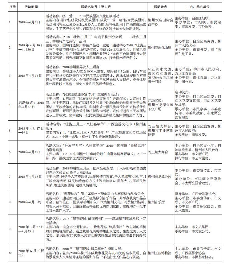 “壮族三月三·八桂嘉年华”柳州市2018年 “紫荆花城 醉美柳州”活动汇总表