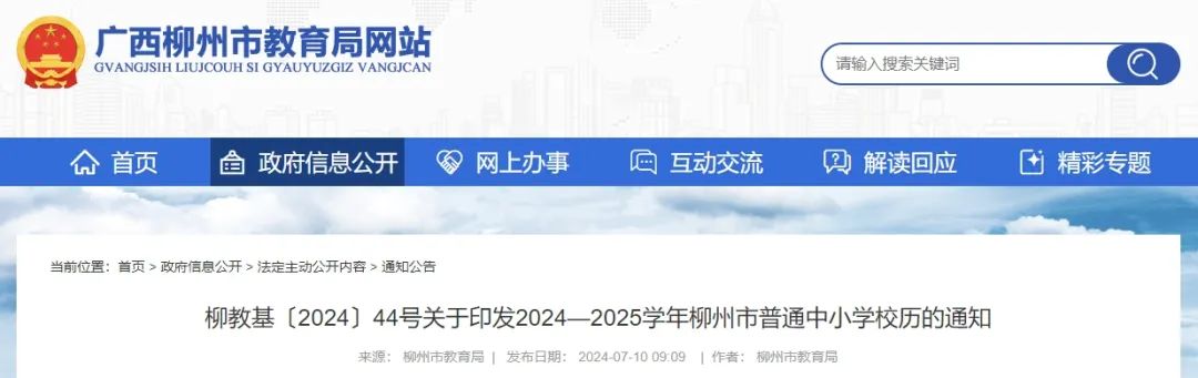 7月9日,柳州市教育局发布《关于印发2024—2025学年柳州市普通中小学校历的通知》。其中提到了时间安排和工作要求,一起来看看最新信息。