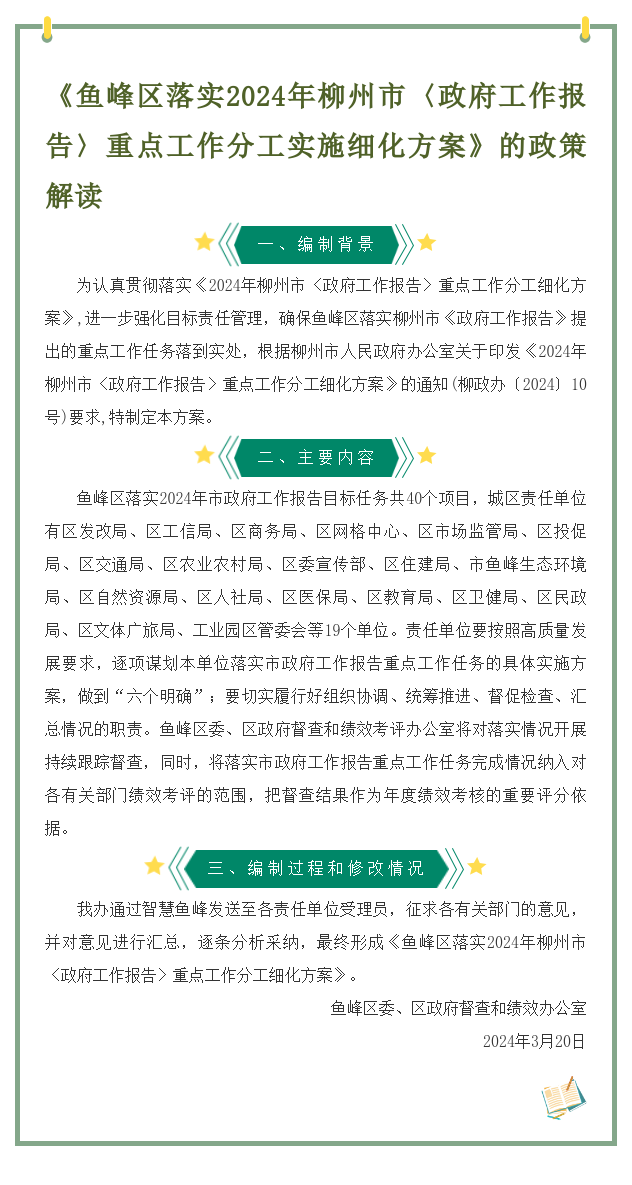 【图解】《鱼峰区落实2024年柳州市〈政府工作报告〉重点工作分工实施细化方案》的政策解读