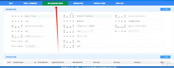 第三步:点击“我要申报”进入系统后,在“单位信息维护管理”中维护用人单位信息,如是劳务派遣关系则需添加劳务派遣单位信息。
