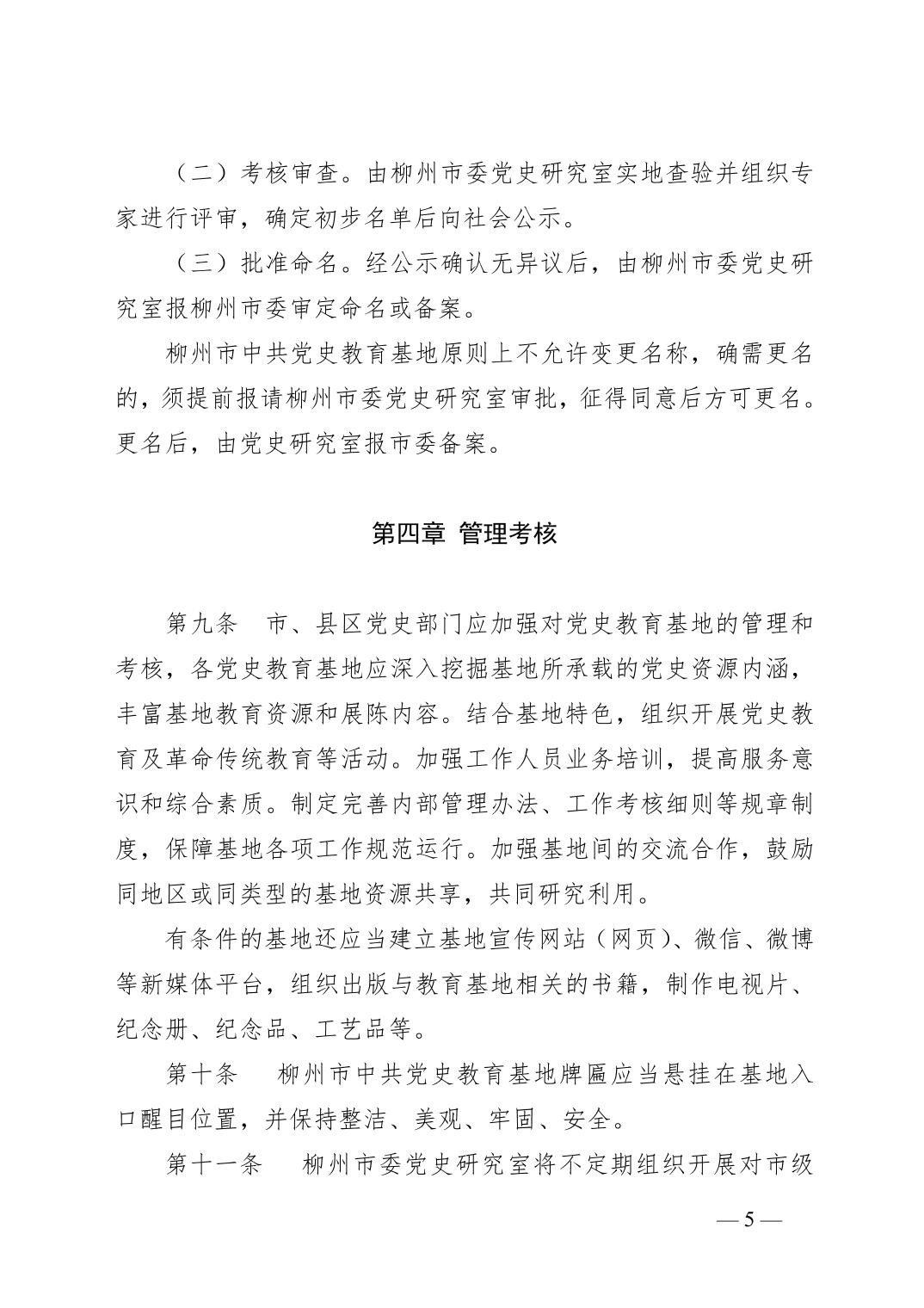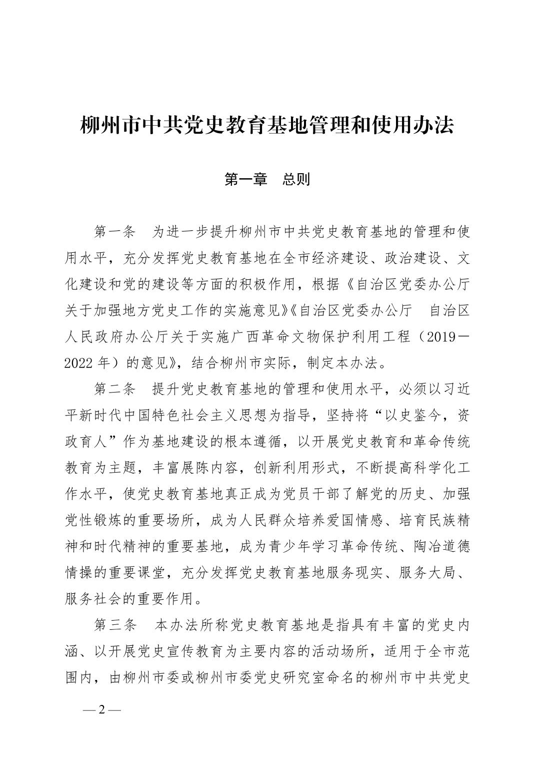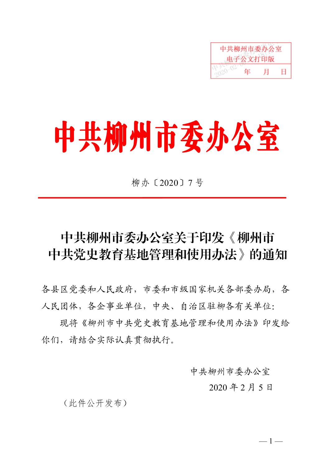 柳办〔2020〕7号 中共柳州市委办公室关于印发《柳州市中共党史教育基地管理和使用办法》的通知