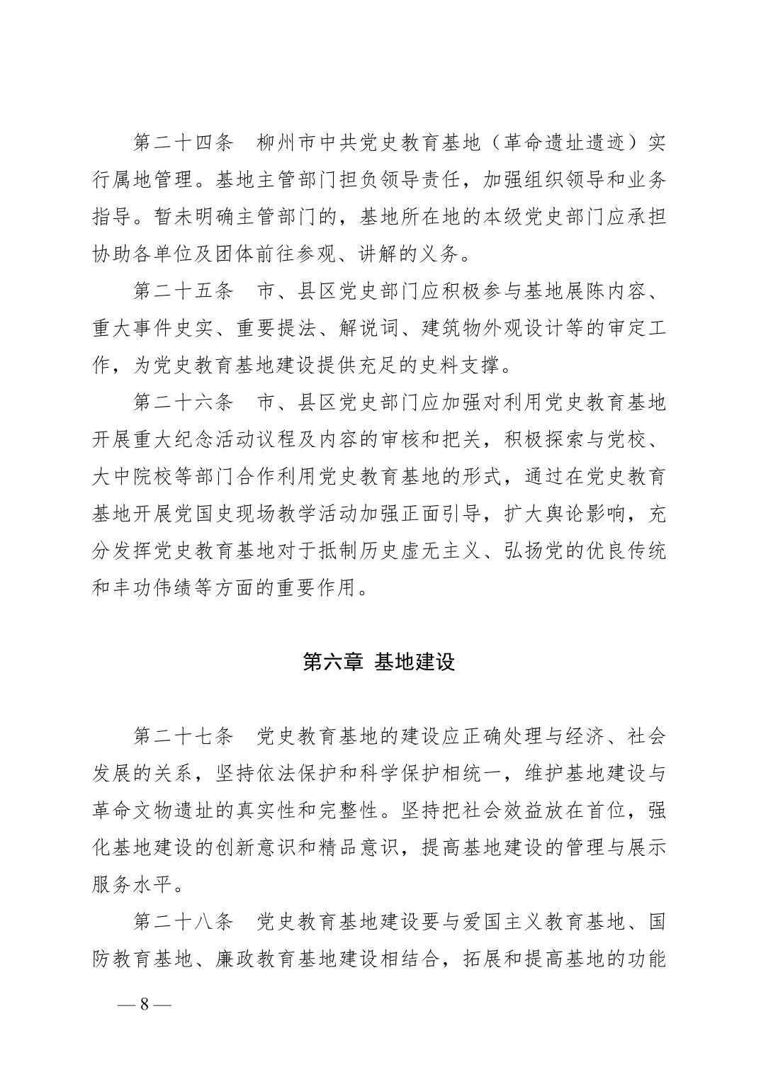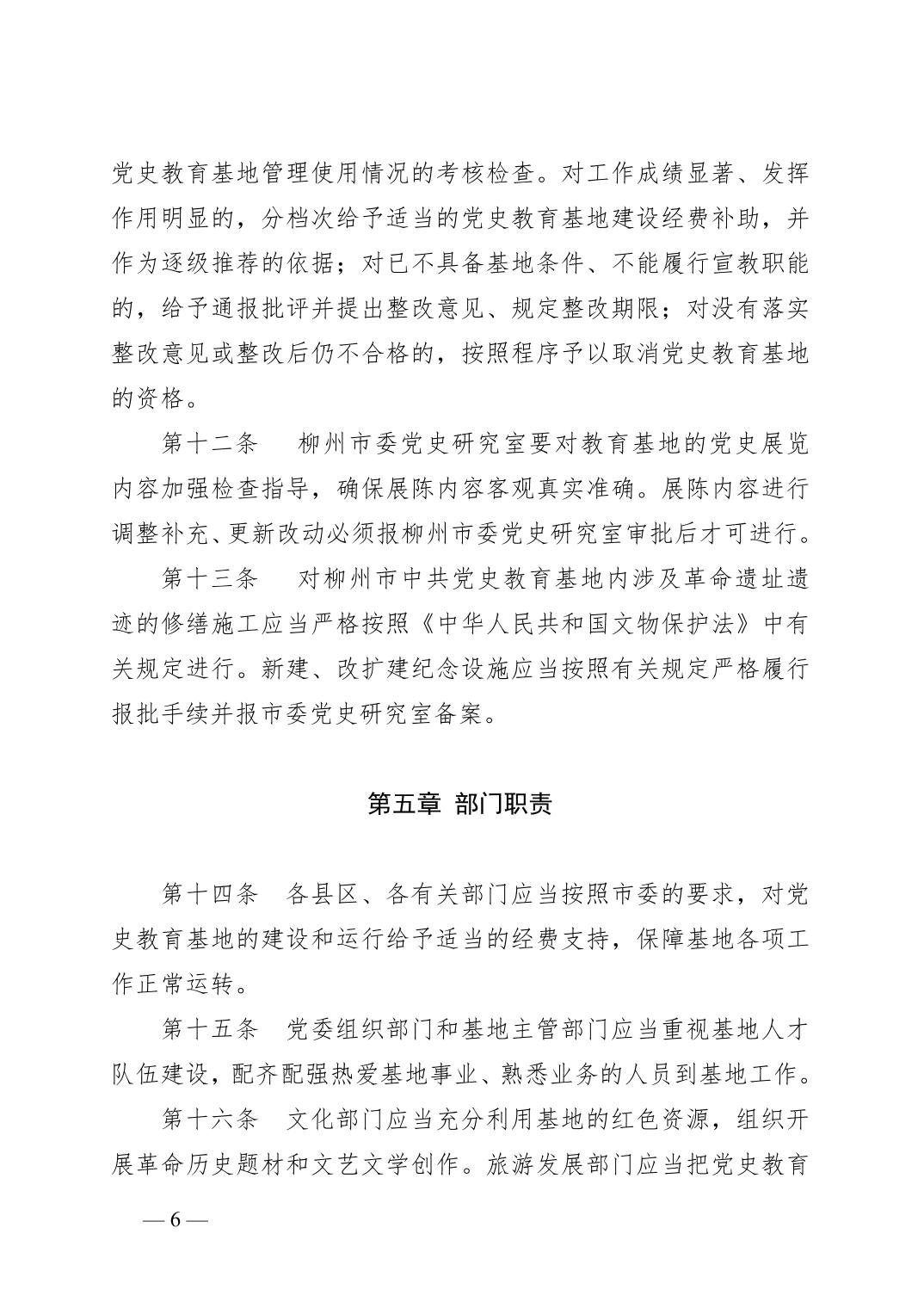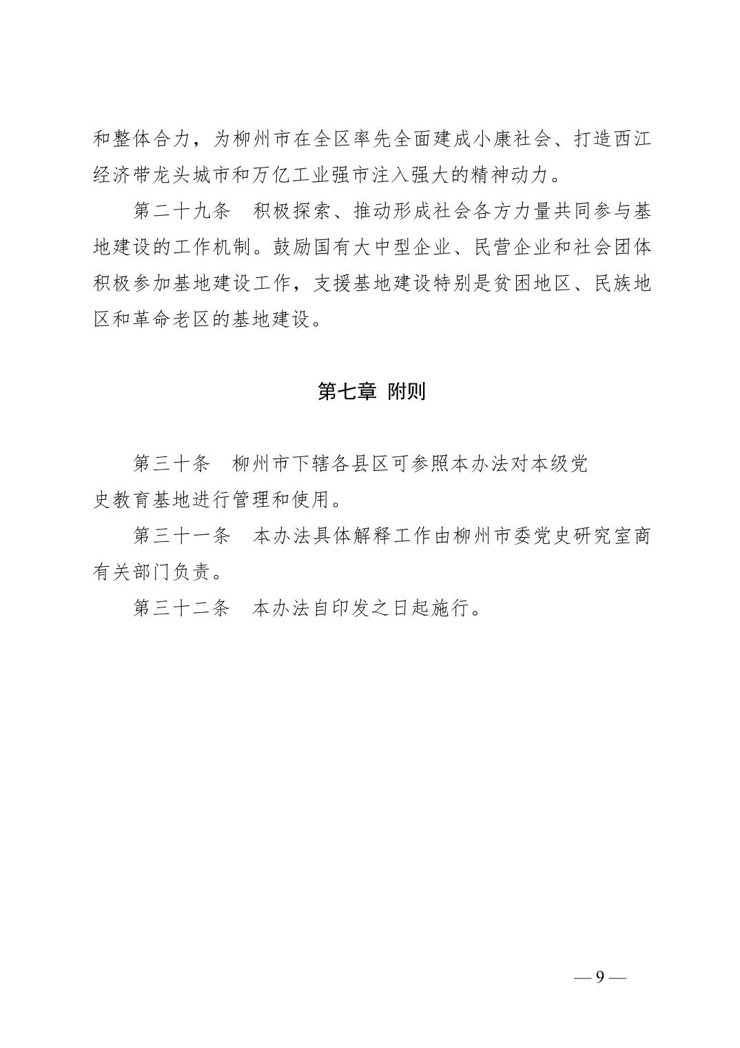柳办〔2020〕7号 中共柳州市委办公室关于印发《柳州市中共党史教育基地管理和使用办法》的通知