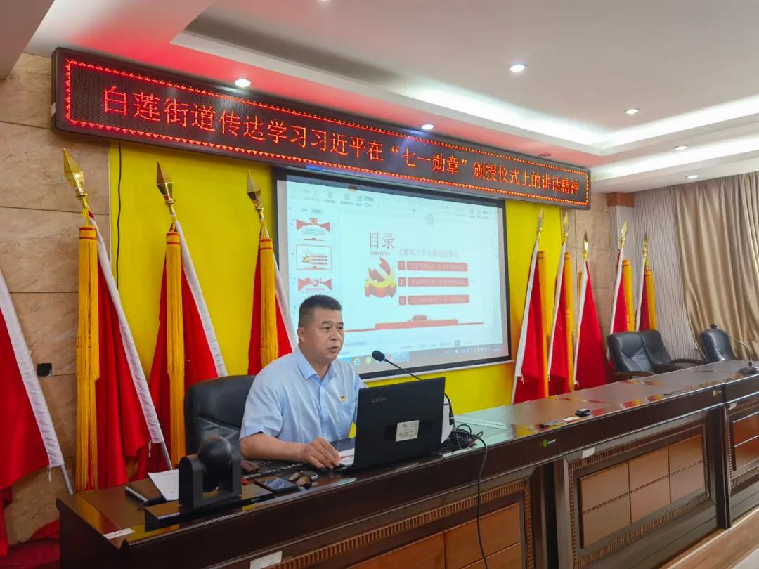 会上,李飞龙传达学习了《习近平:在“七一勋章”颁授仪式上的讲话》、《习近平:在庆祝中国共产党成立100周年大会上的讲话》讲话精神,号召全街道党员迅速掀起学习热潮,学深悟透、创先争优,切实把思想和行动统一到习近平总书记重要讲话精神上来,凝心聚力投身全面建设社会主义现代化国家新征程。