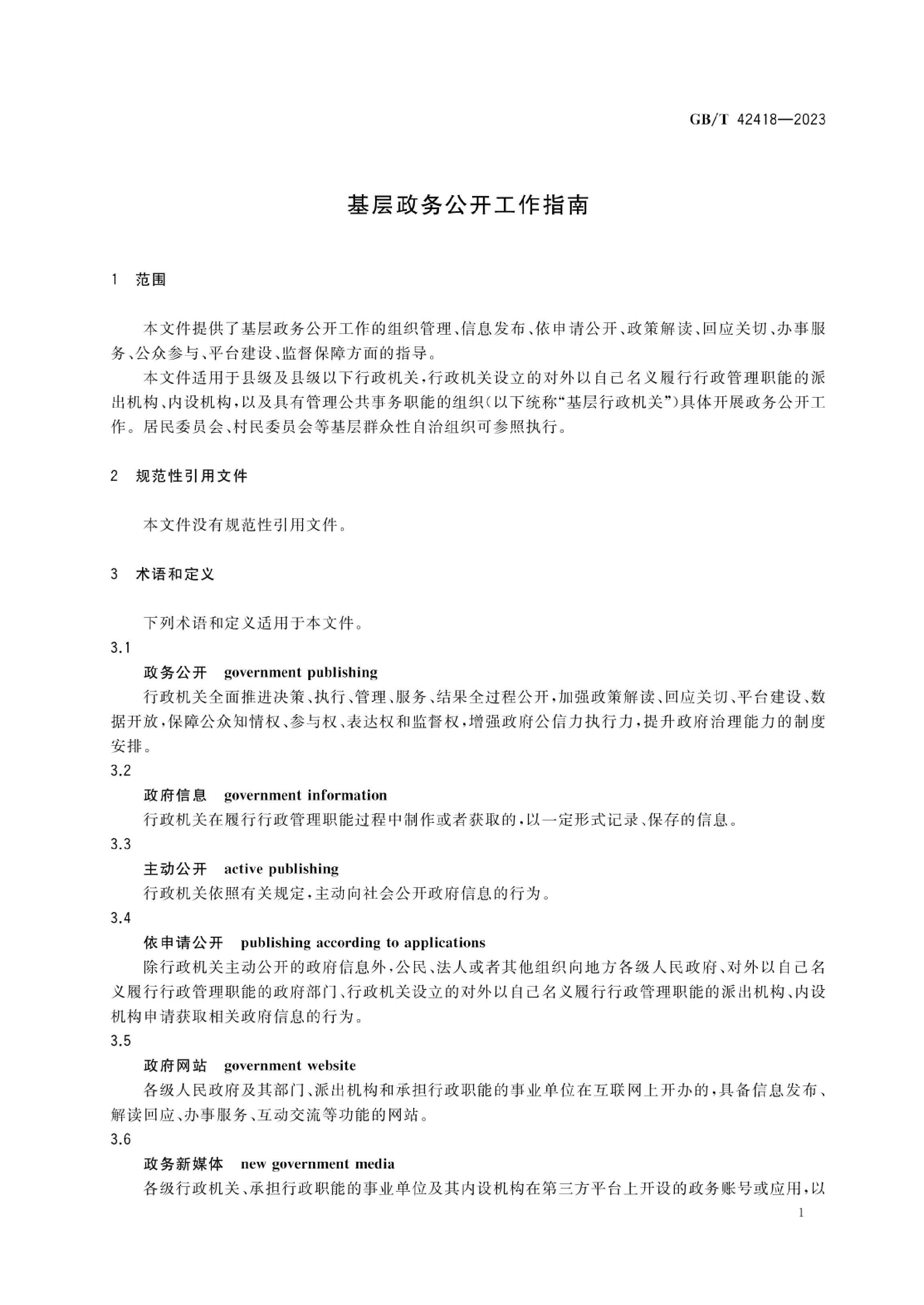 基层政务公开工作指南(GBT42418-2023)