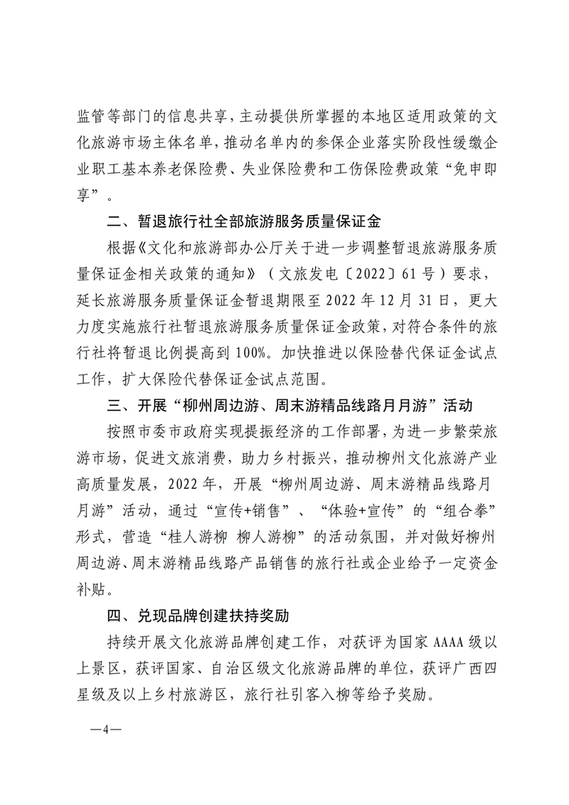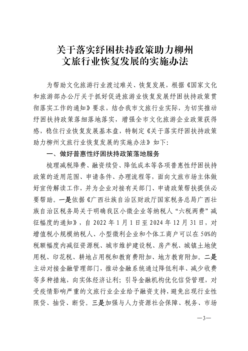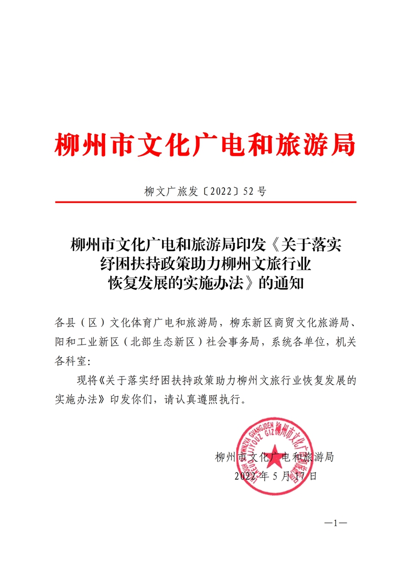 柳文广旅发〔2022〕52号 柳州市文化广电和旅游局印发《关于落实纾困扶持政策助力柳州文旅行业恢复发展的实施办法》的通知