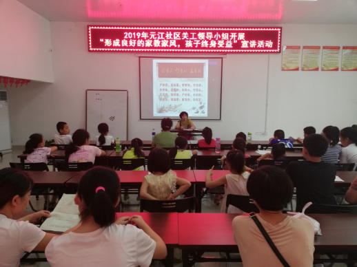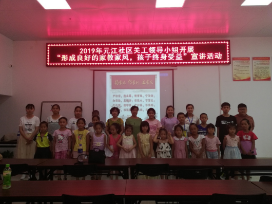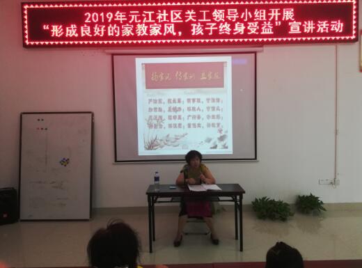 为进一步弘扬中华优秀传统文化,让好的家风在每一个家庭传承。8月1日上午,麒麟街道元江社区关工领导小组在元江社区开展“形成良好的家教家风,孩子终身受益”宣讲活动。此次活动吸引了辖区内的30余个家庭参加。