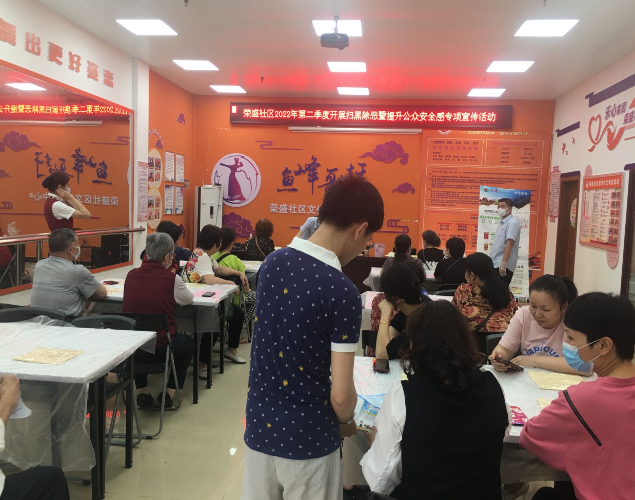 为让居民持续关注扫黑除恶,提升居民反邪教意识,近日下午,荣盛社区联合柳州银行开展扫黑除恶暨提升公众安全感、反邪教宣传活动。