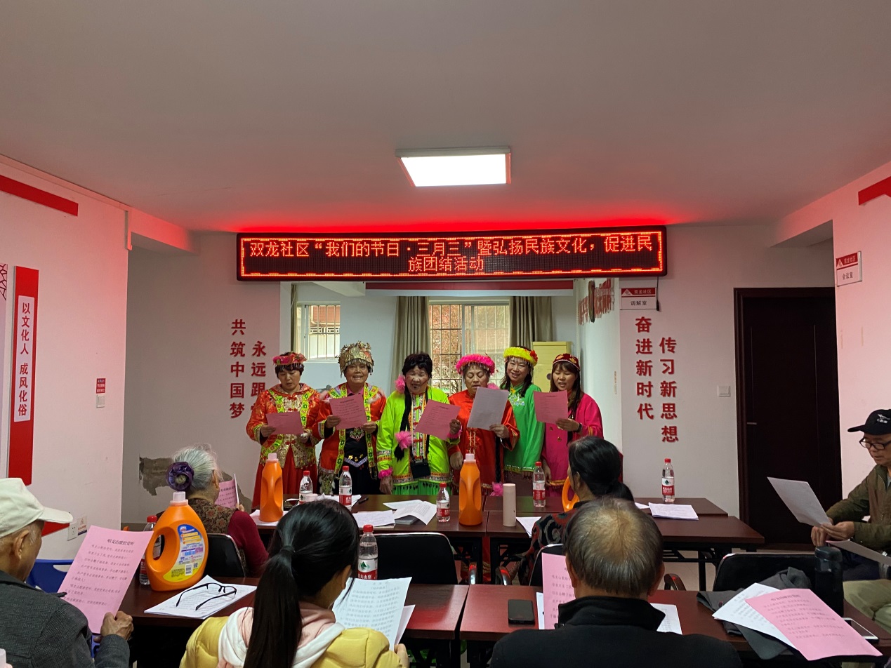 4月7日下午,双龙社区组织党员开展“我们的节日·三月三”暨弘扬民族文化,促进民族团结活动。