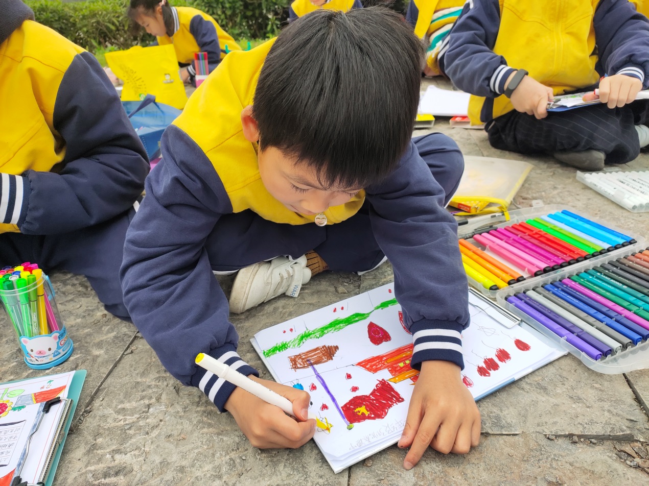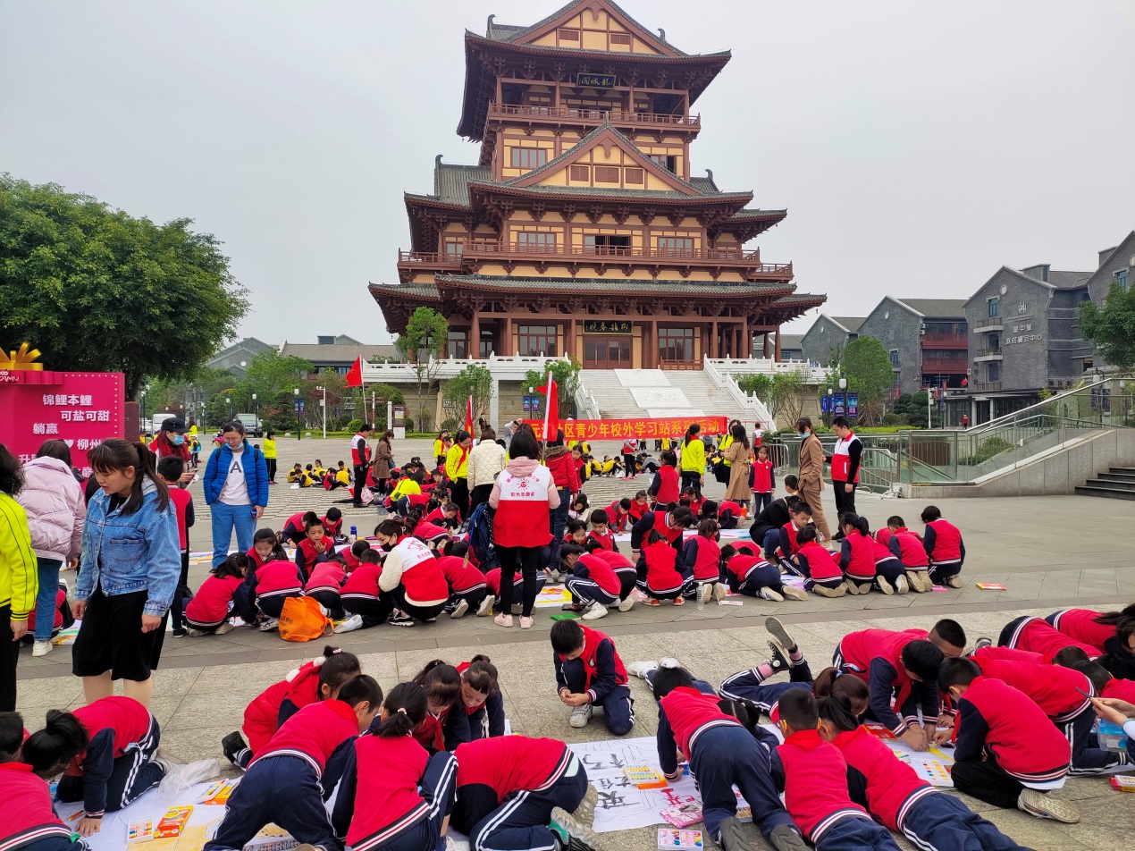 4月9日,元江社区校外学习站联合燎原路小学到窑埠古镇开展“百年党史,妙笔童心”红色研学百米长卷绘画活动。