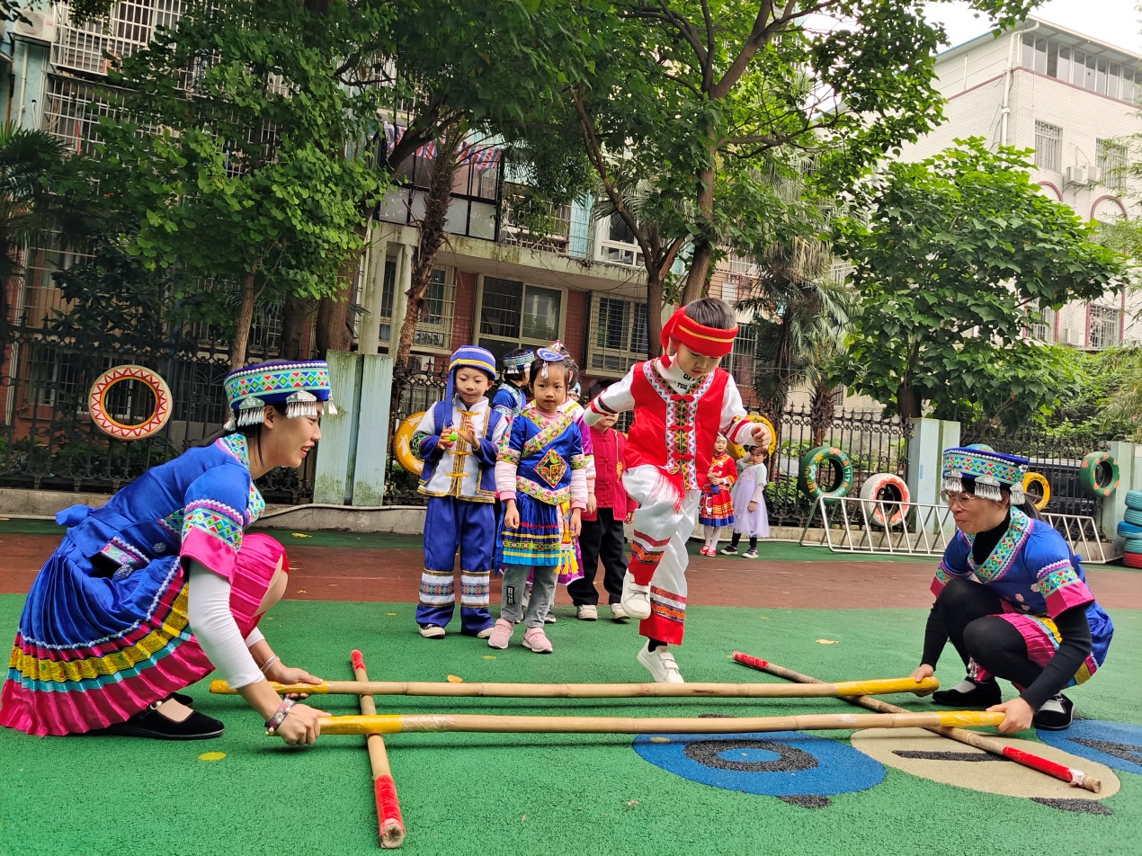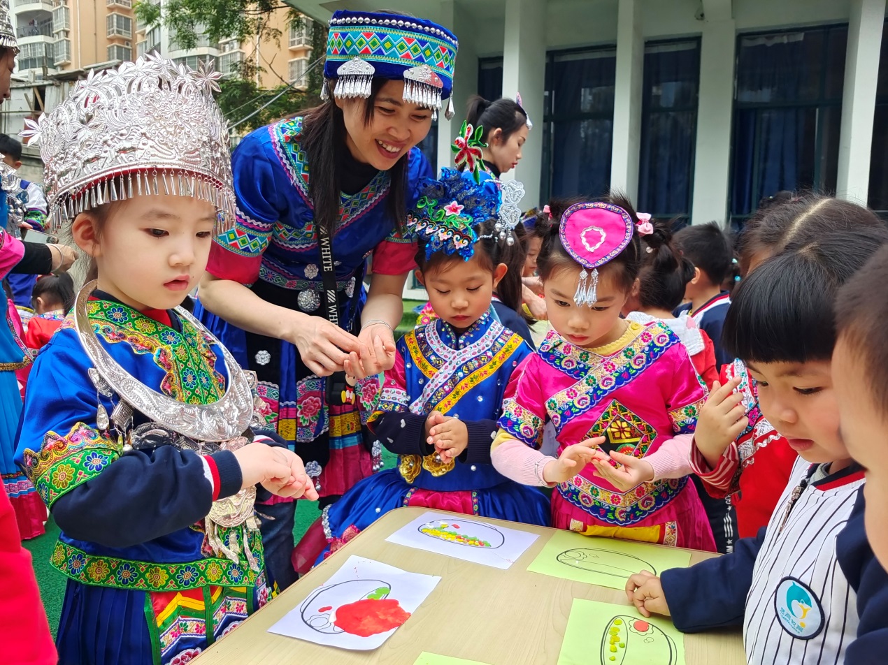 4月12日,阳光社区联合辖区单位鱼峰区阳光艺高幼儿园以庆祝建党100周年为主旋律,开展我们的节日•三月三——“学党史感党恩 相约紫荆 壮乡韵浓”主题活动。