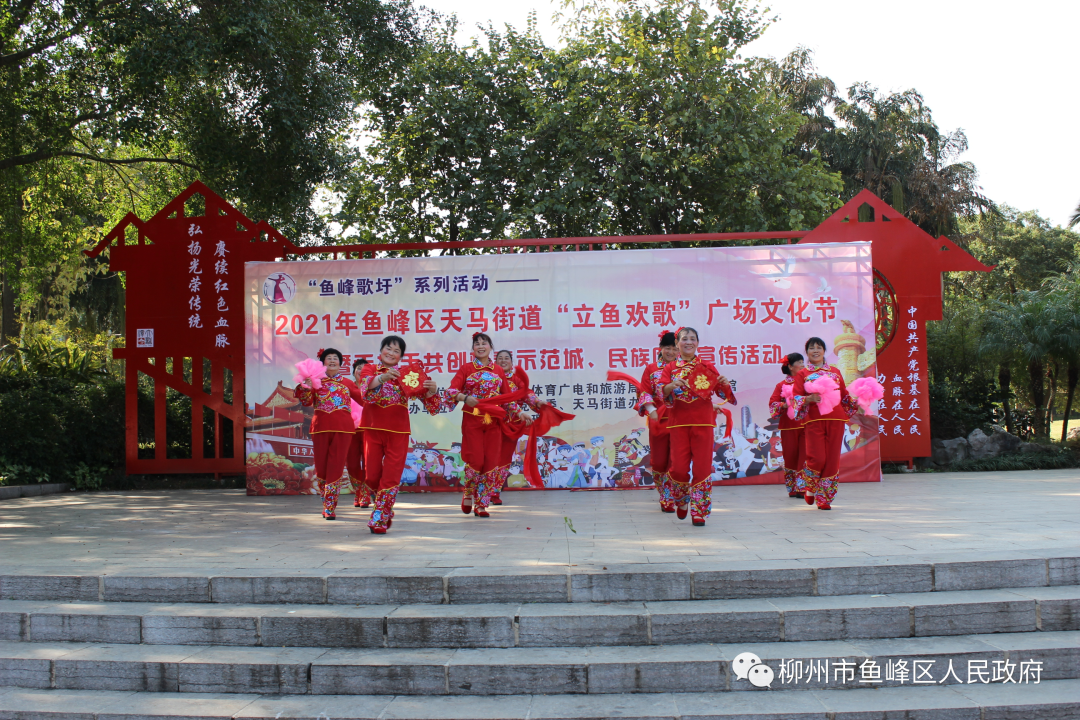 为进一步贯彻落实党的十九大精神,提升鱼峰区文化内涵,打造文化强区,宣传歌圩文化品牌,11月10日上午,天马街道在大龙潭公园下沉式广场举办“鱼峰歌圩·立鱼欢歌”广场文化节活动。区纪委副书记文颖,区监委委员、信访室主任简帆,天马街道党工委副书记、办事处主任赵品庸,天马街道党工委副书记、纪工委书记石丹华等参加活动。