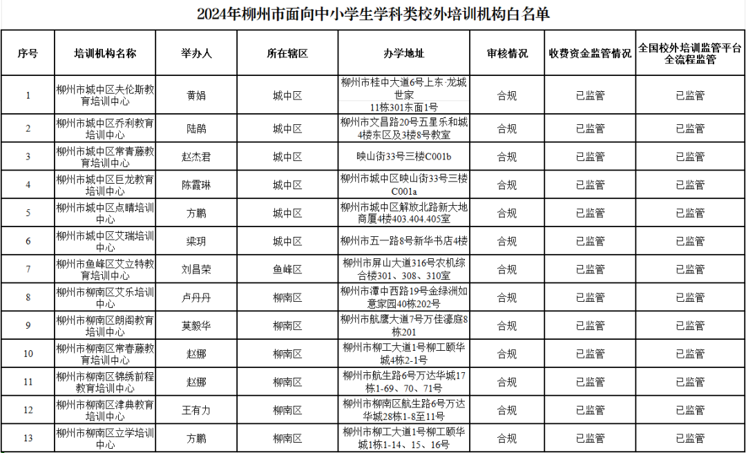 为全面落实国家“双减”政策,切实减轻义务教育阶段学生校外培训负担,保障家长和学生的合法权益,着力构建良好的教育环境,柳州市教育局公布全市面向中小学生学科类校外培训机构最新一批“黑白名单”。