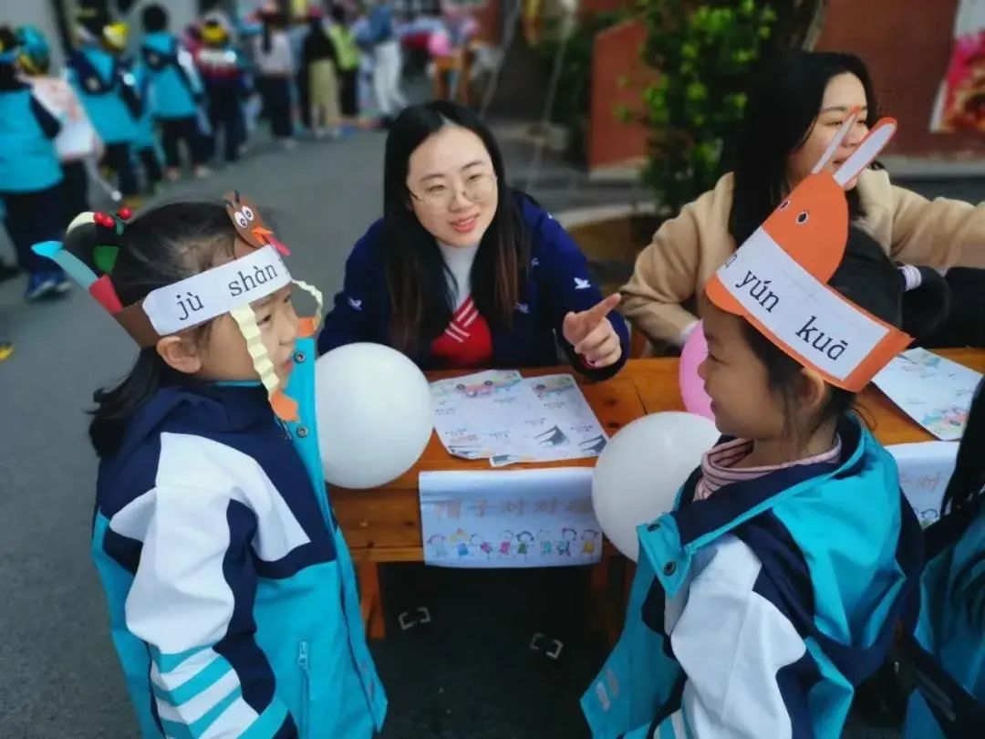 “j,x,y!”学生在 “跳房子”游戏中,大声读出第一格中贴着的拼音并向前跳了一步。驾鹤路小学教育集团乐群、银桐两个校区上演了一场有趣且富有创意的“乐学”拼音大闯关活动,学生们踊跃中收集印章,争当“拼音闯关王”。这是学校“作业改革”的一次尝试,以学科融合的方式将语文、美术、体育、劳动等学科教育进行了有机结合,学生们在学中玩,在玩中巩固提高。