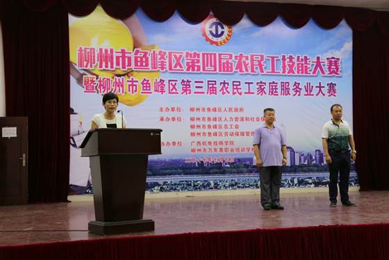 鱼峰区政府副区长黄小荣为柳州市鱼峰区第四届农民工技能大赛进行开幕式讲话