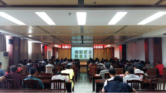 2017年6月20日下午,鱼峰区农林水利局与柳州市农工商有限责任公司联合举办了一期蔬菜种植技术及无公害农产品技术培训班。此次培训班特邀请柳州市蔬菜技术推广站覃孟春站长到场授课,来自农工商公司无公害蔬菜基地种植户及鱼峰辖区行政村村民近80人参加了培训。
