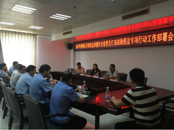 在下点检查前,首先在我区419会议室召开了鱼峰区开展食盐质量安全检查及打击制贩假盐专项行动工作部署会。会上,谢彩玲副主任和陈立中副局长分别就当前我市食盐安全、管理工作现状及存在的问题进行了通报并对此次检查进行工作部署。区政府党组成员周朴在会上强调了开展食盐质量安全检查的必要性和重要性,要求各相关部门切实配合好市盐务局做好检查工作。
