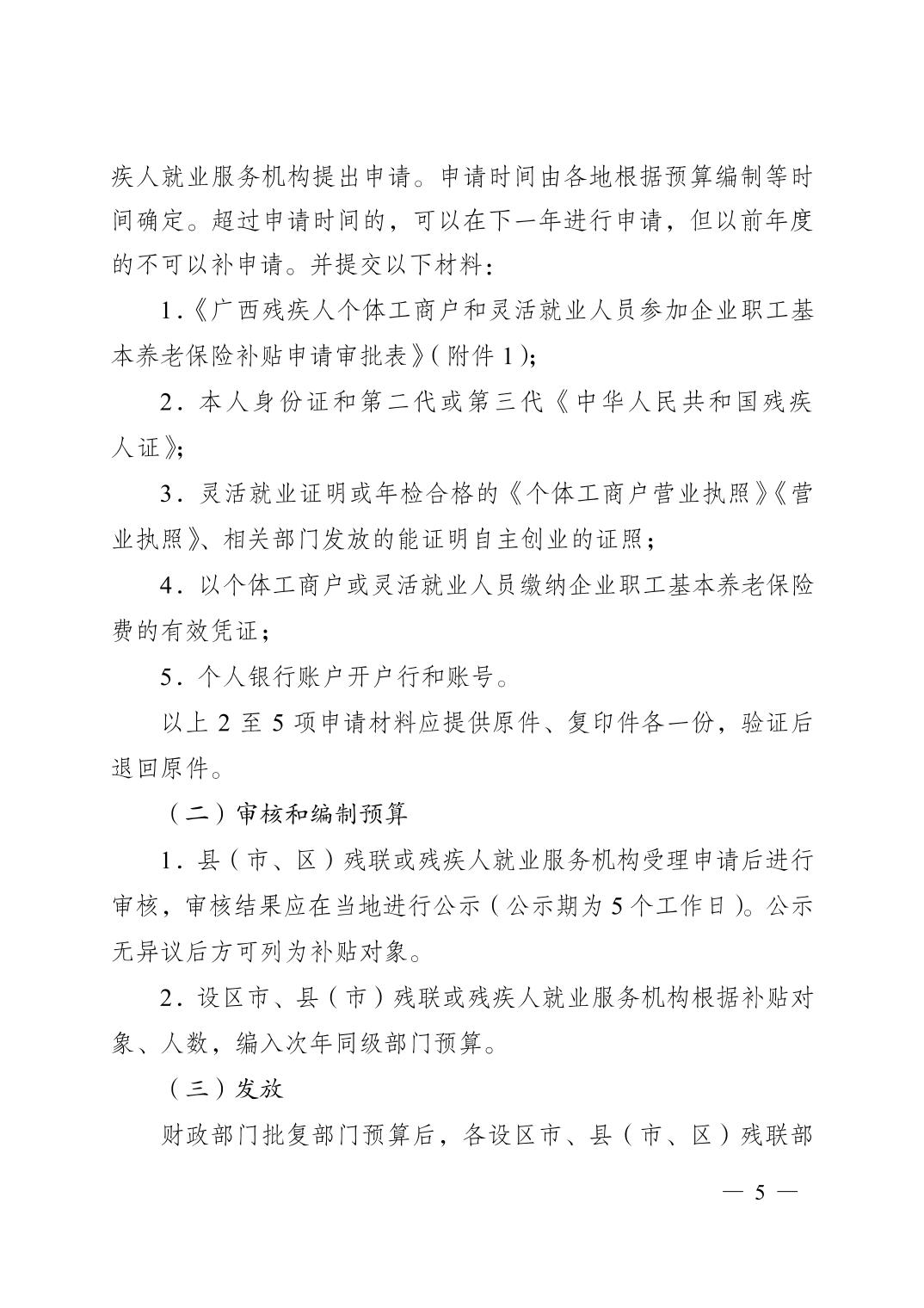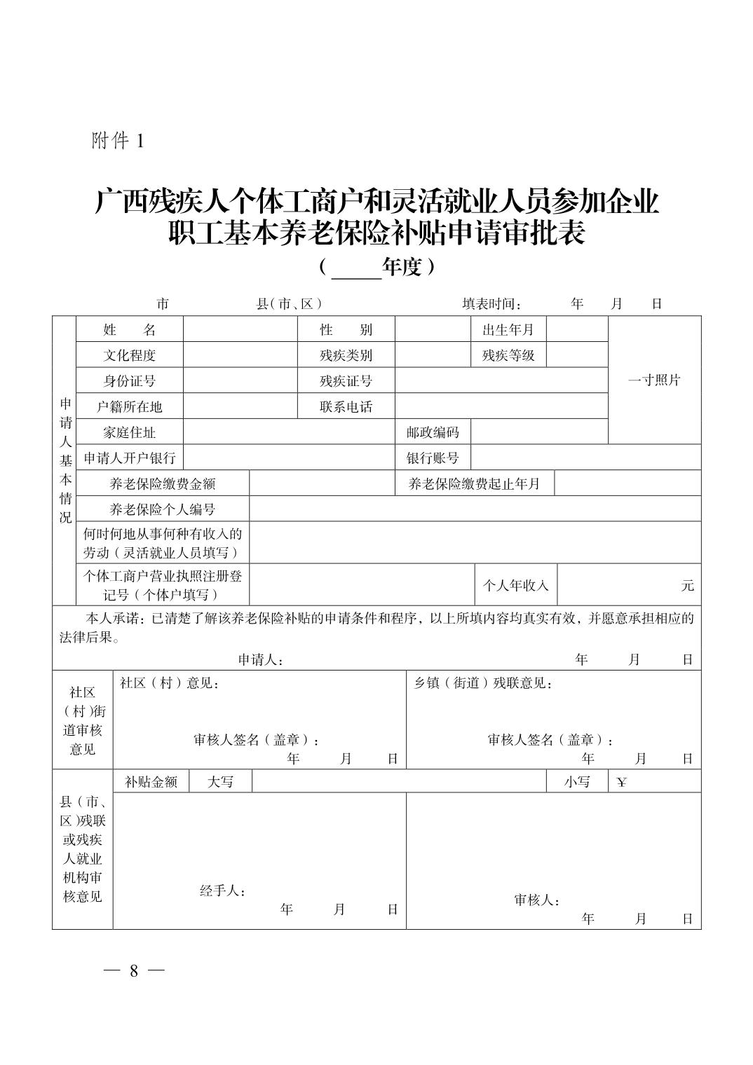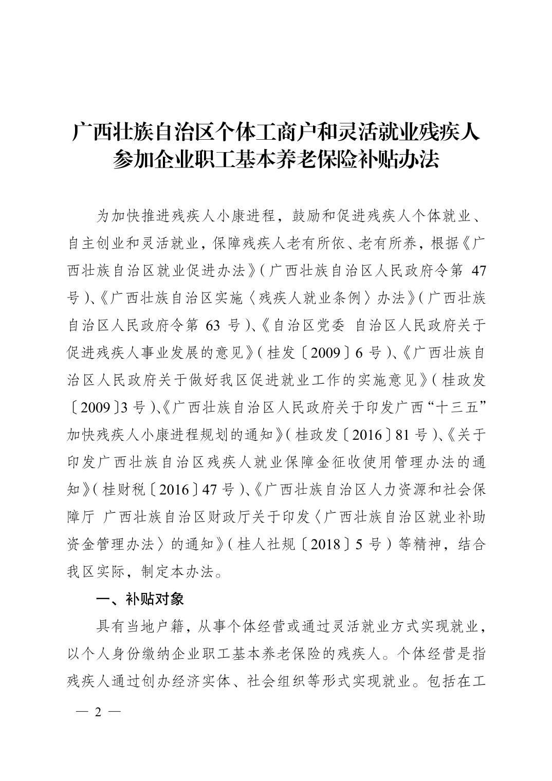 广西壮族自治区个体工商户和灵活就业残疾人参加企业职工基本养老保险补贴办法
