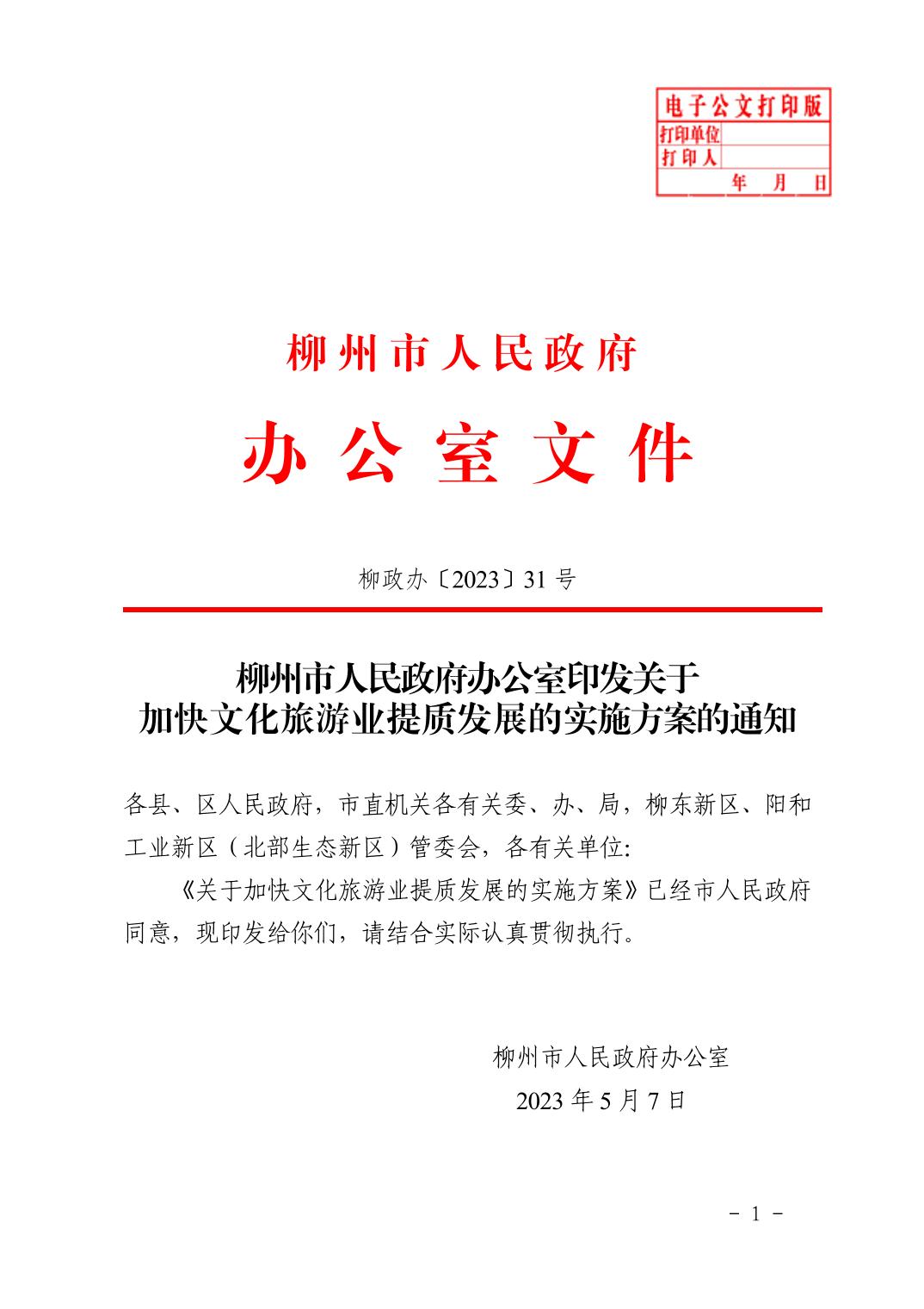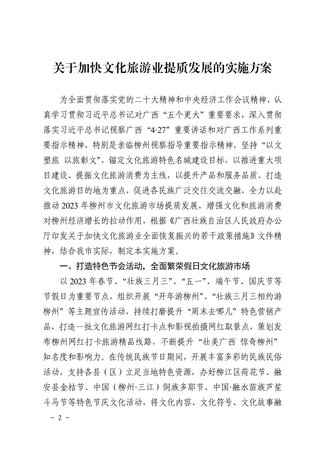 柳政办〔2023〕31号 印发关于加快文化旅游业提质发展的实施方案的通知