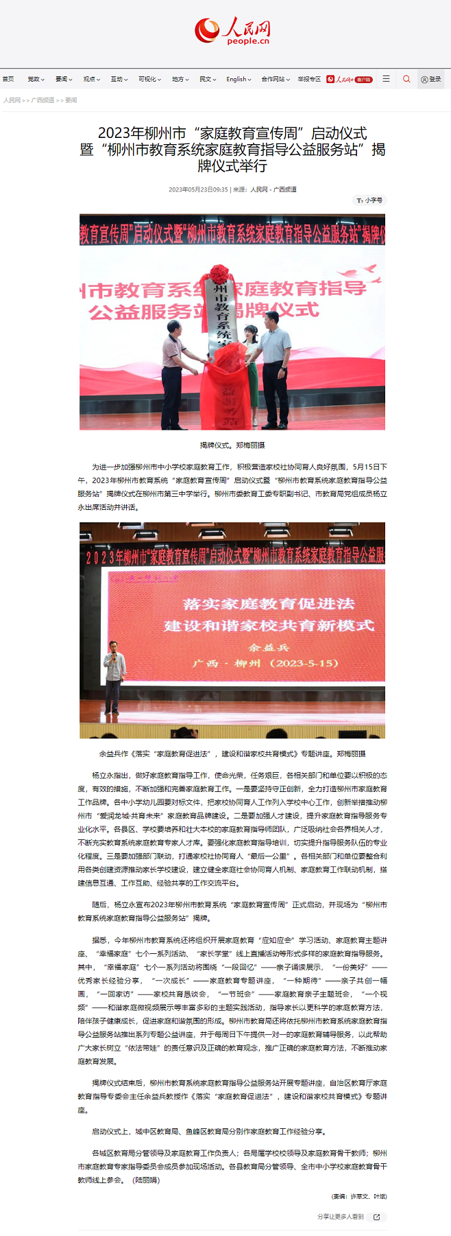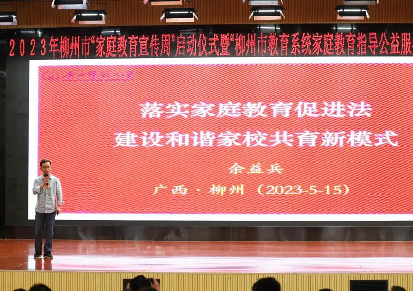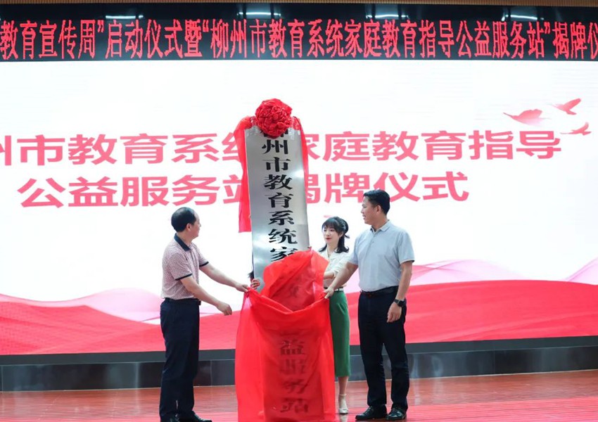 随后,杨立永宣布2023年柳州市教育系统“家庭教育宣传周”正式启动,并现场为“柳州市教育系统家庭教育指导公益服务站”揭牌。
