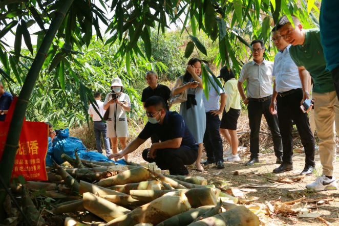 考察团一行先后来到白沙镇王眉村螺蛳粉原材料种植基地和里雍镇龙团村上石汉竹笋种植基地、里雍酸厂进行实地参观考察。参观过程中考察团对螺蛳粉原材料种植产业及原材料加工产生了浓厚的兴趣,详细的了解了螺蛳粉原材料产业发展方向。