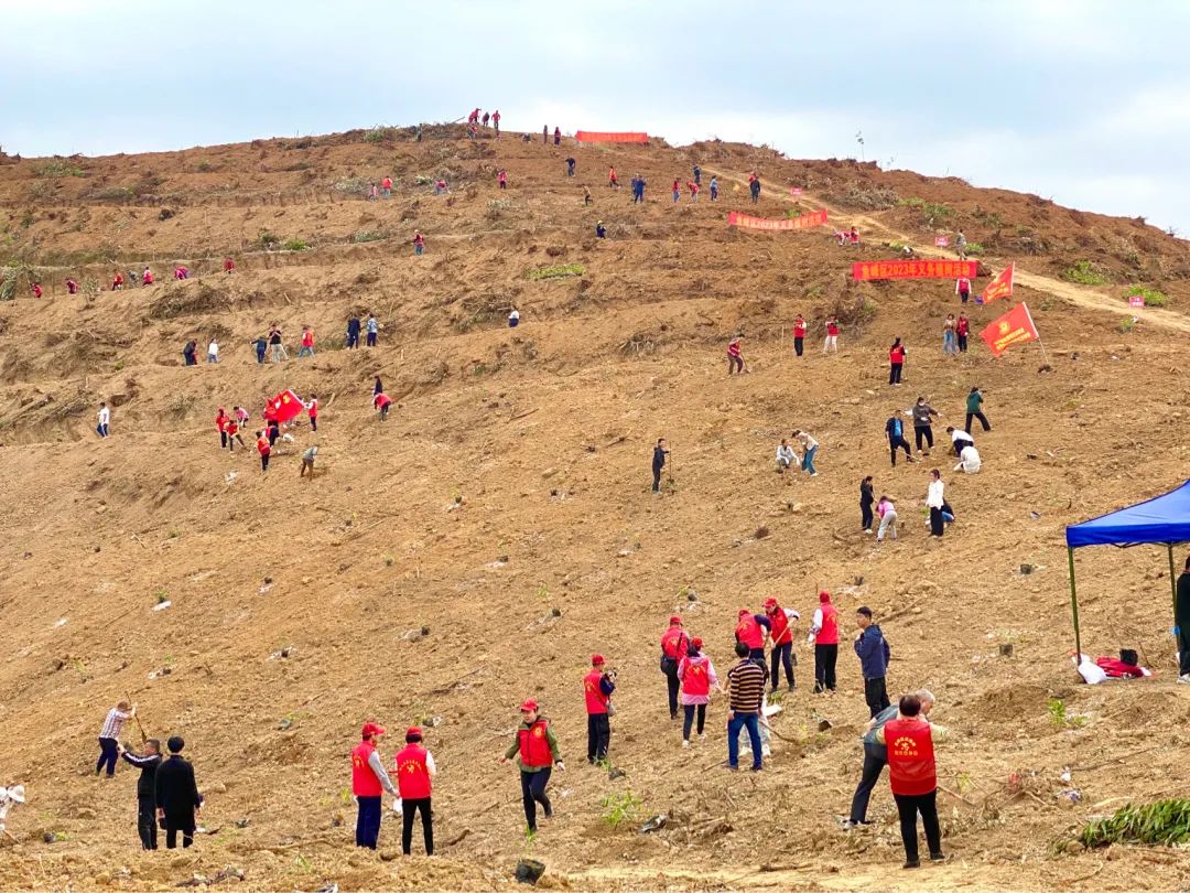 活动现场,与会领导、干部群众一起开展螺蛳粉原材料麻竹种植活动。