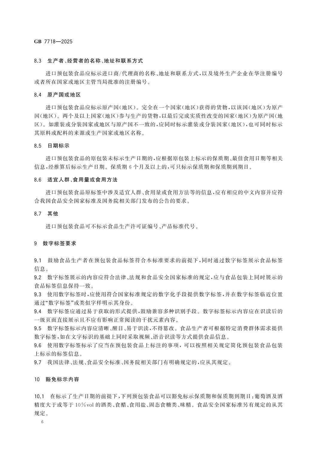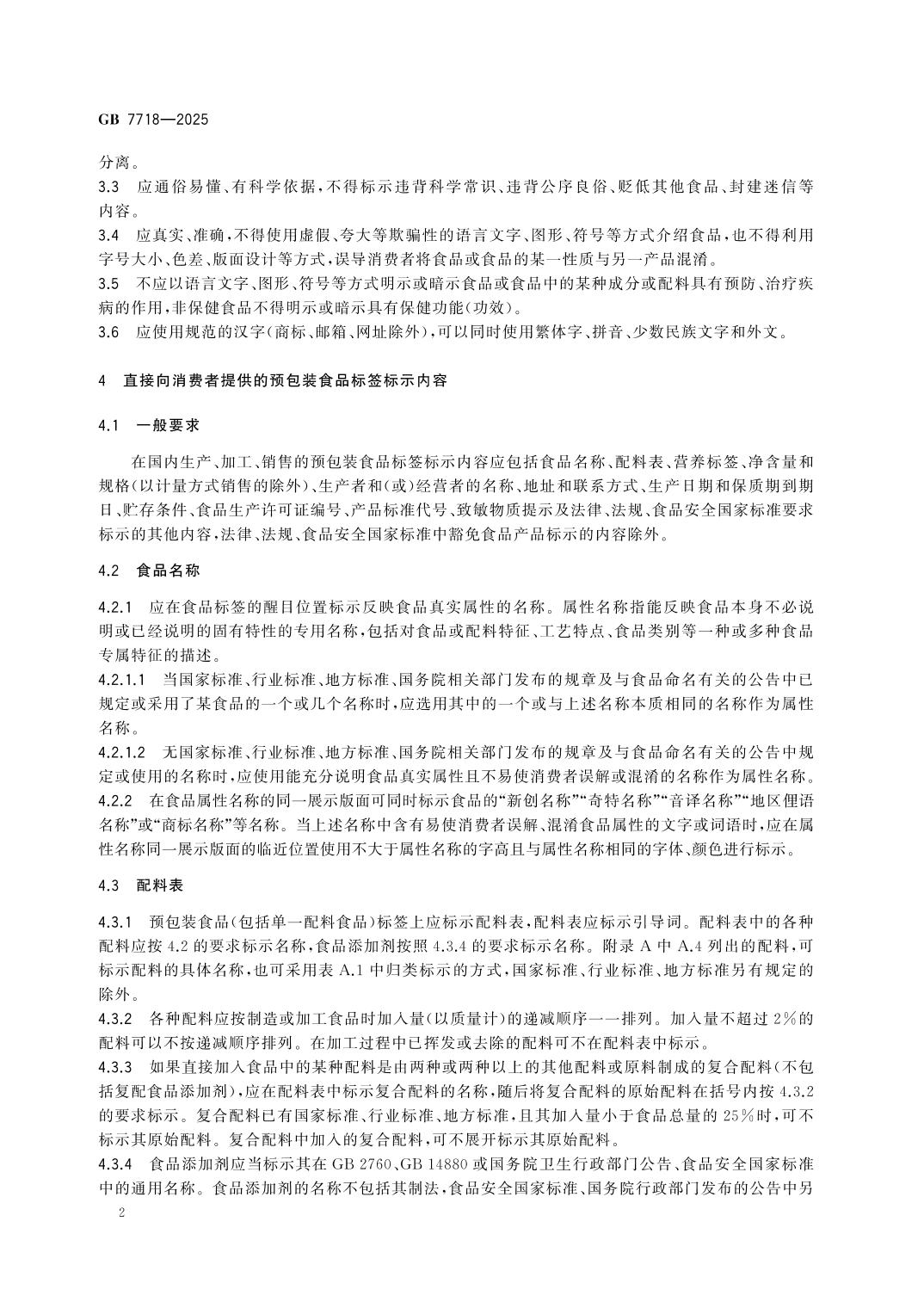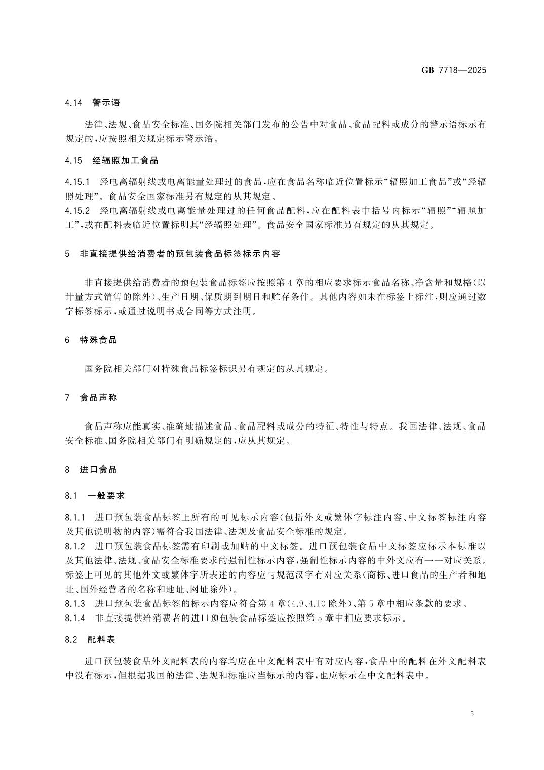 GB7718-2025食品安全国家标准 预包装食品标签通则