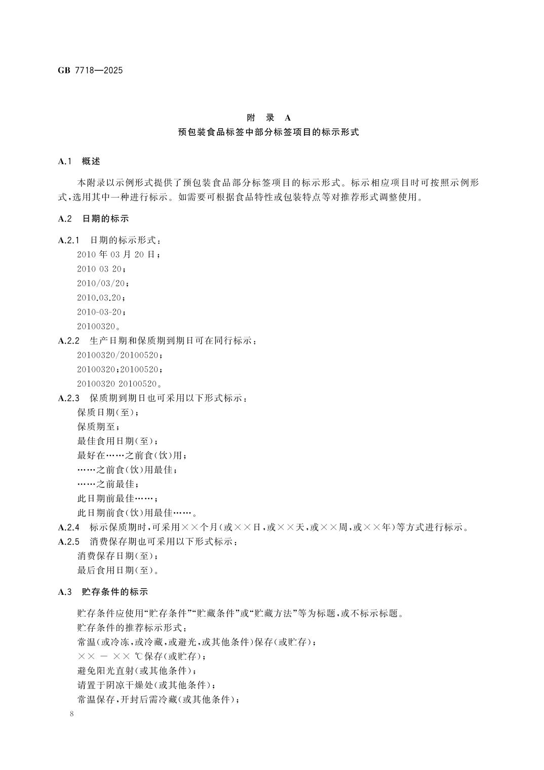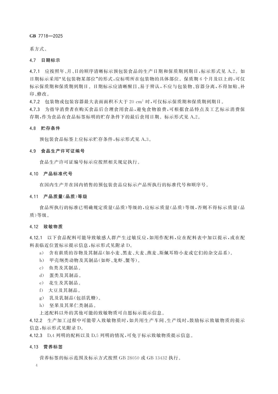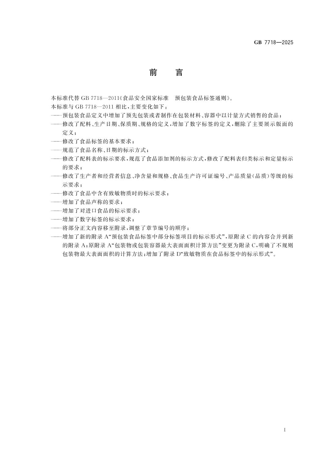 GB7718-2025食品安全国家标准 预包装食品标签通则