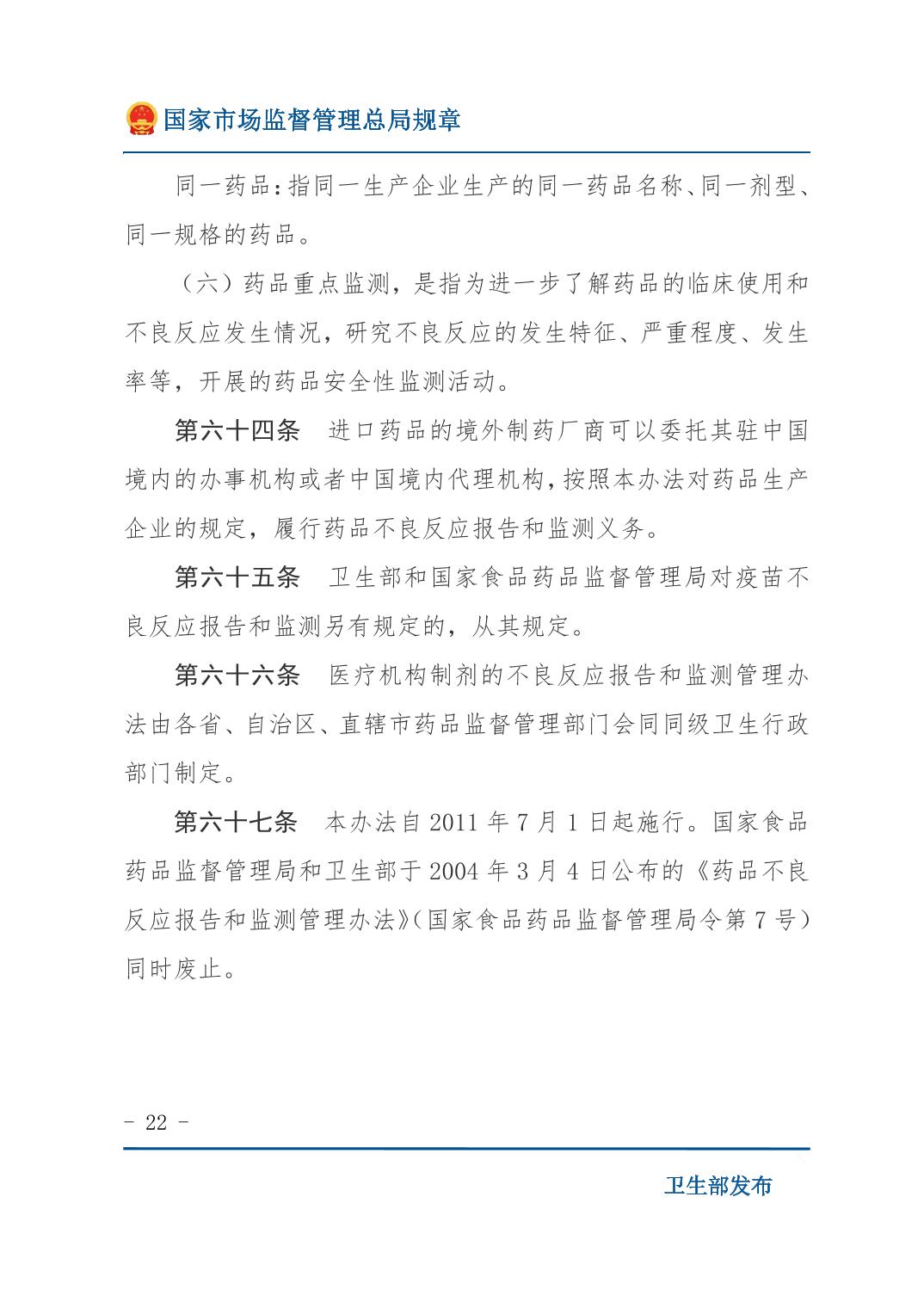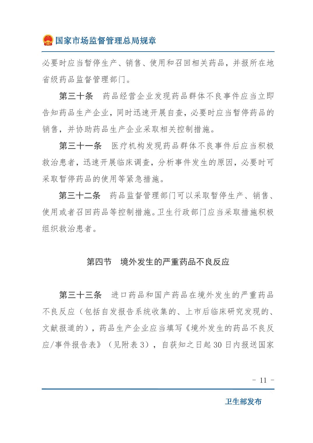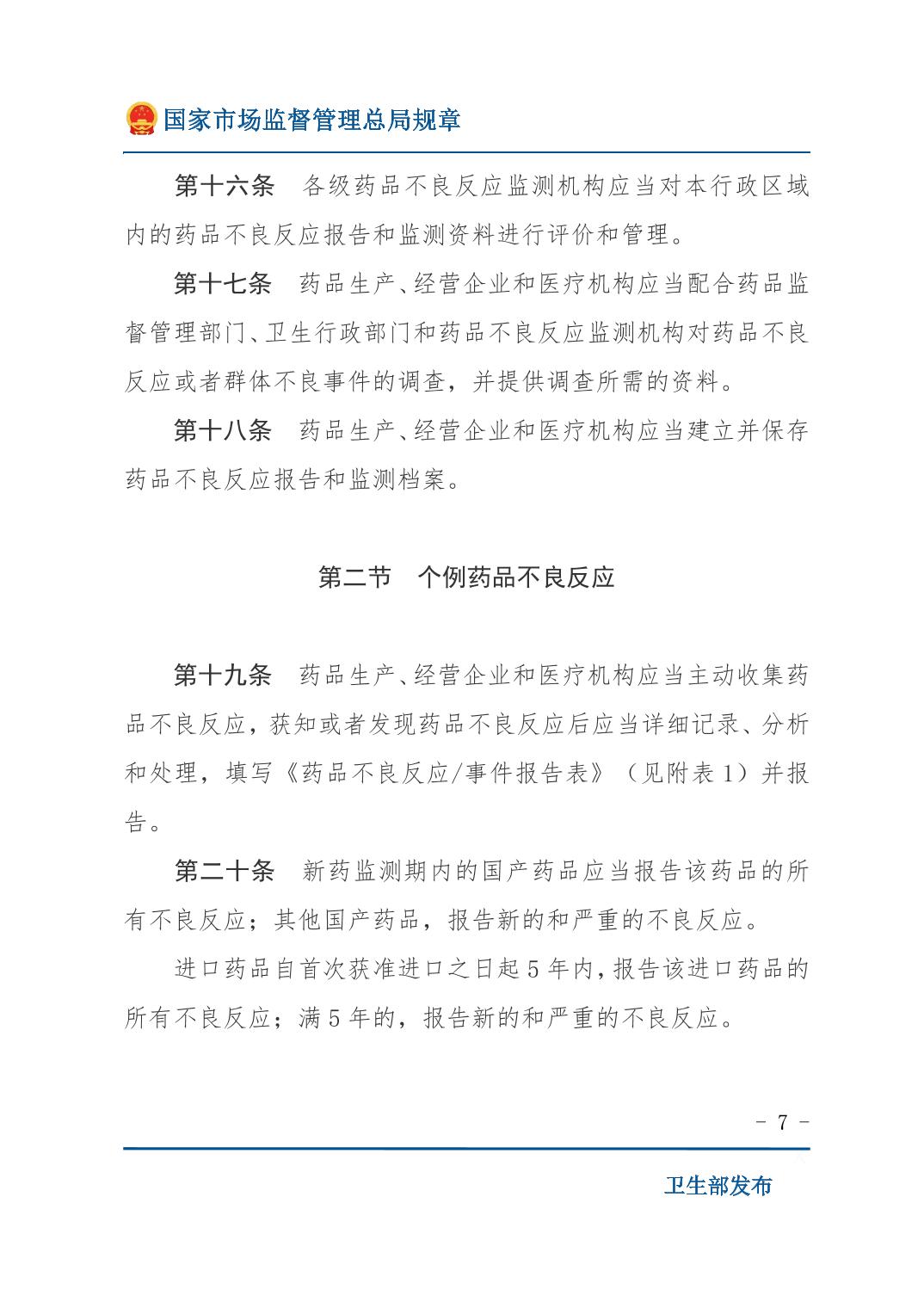 药品不良反应报告和监测管理办法