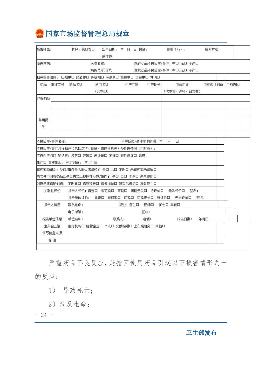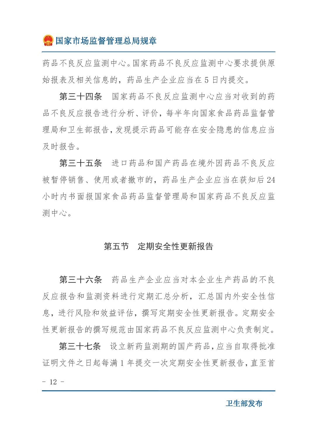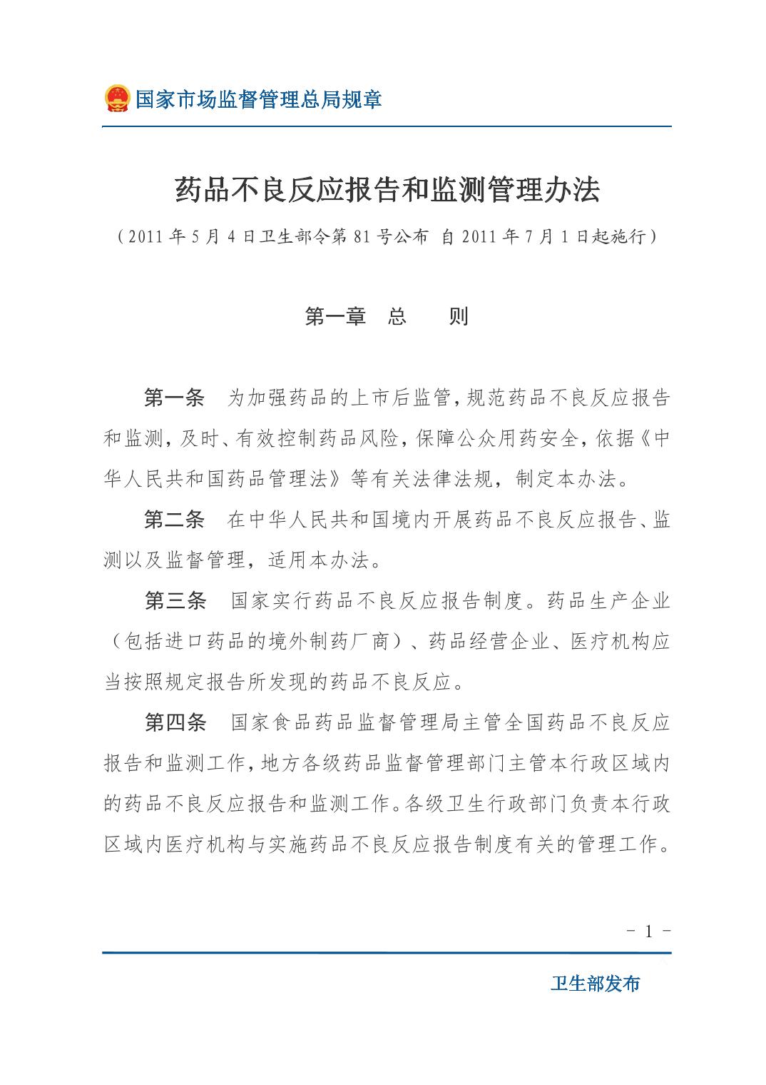 药品不良反应报告和监测管理办法