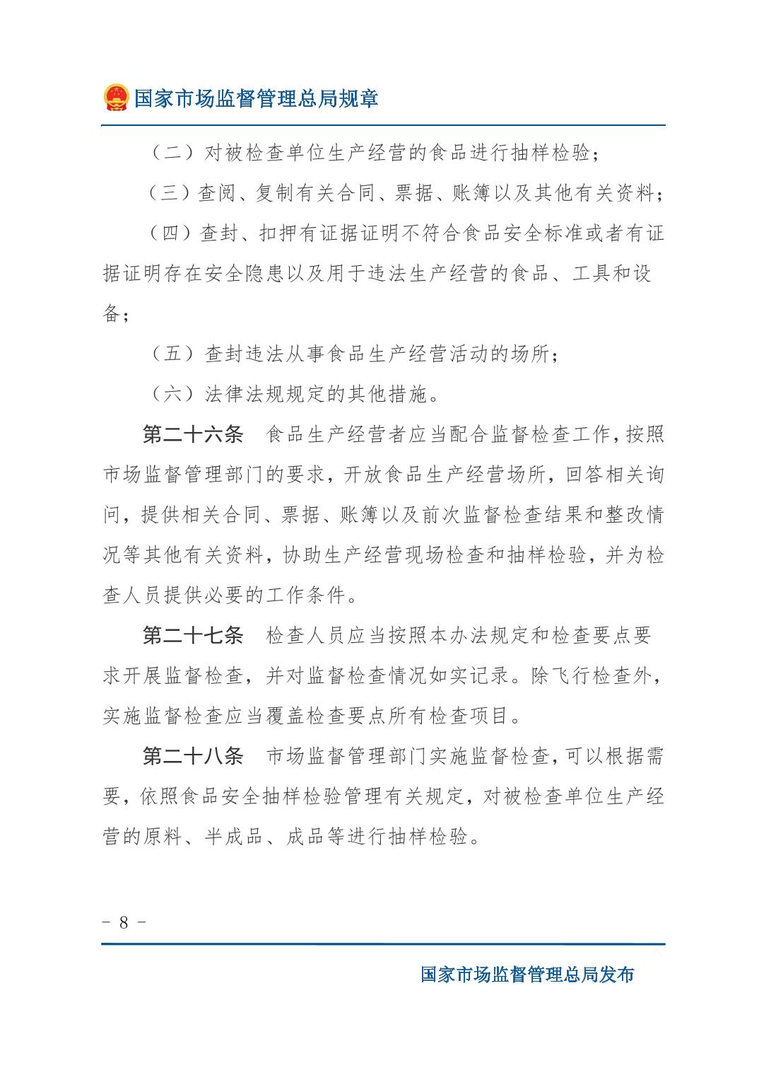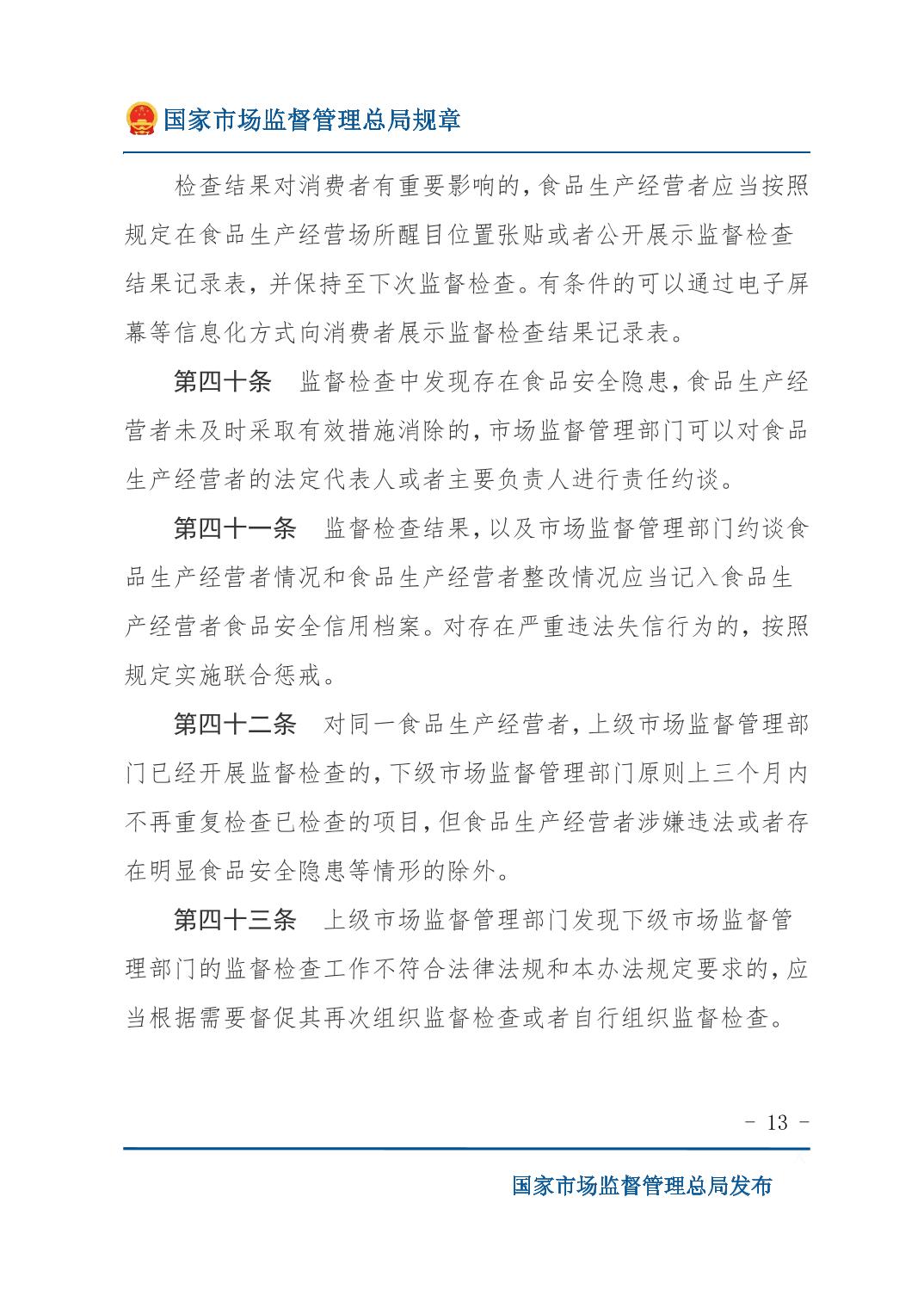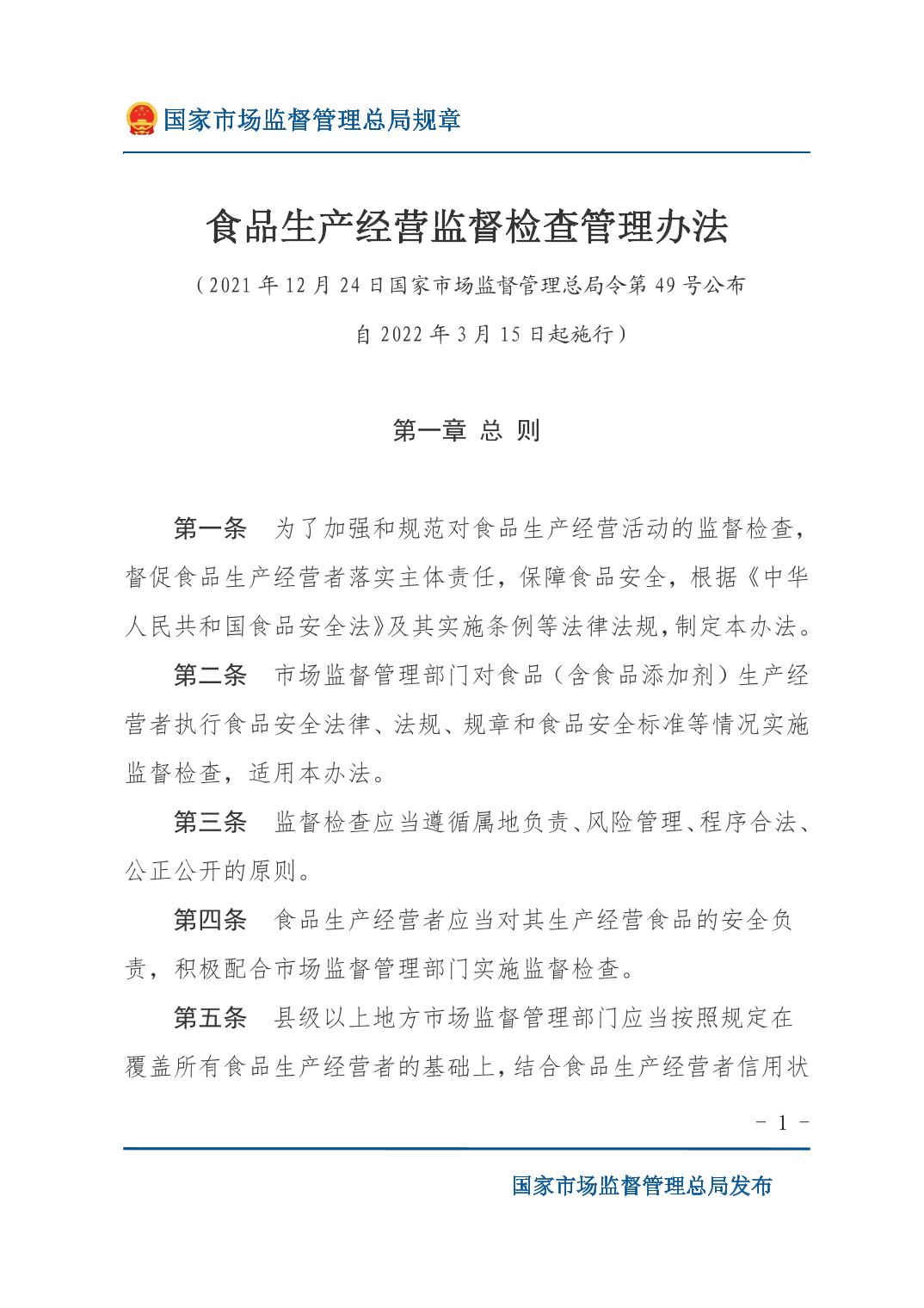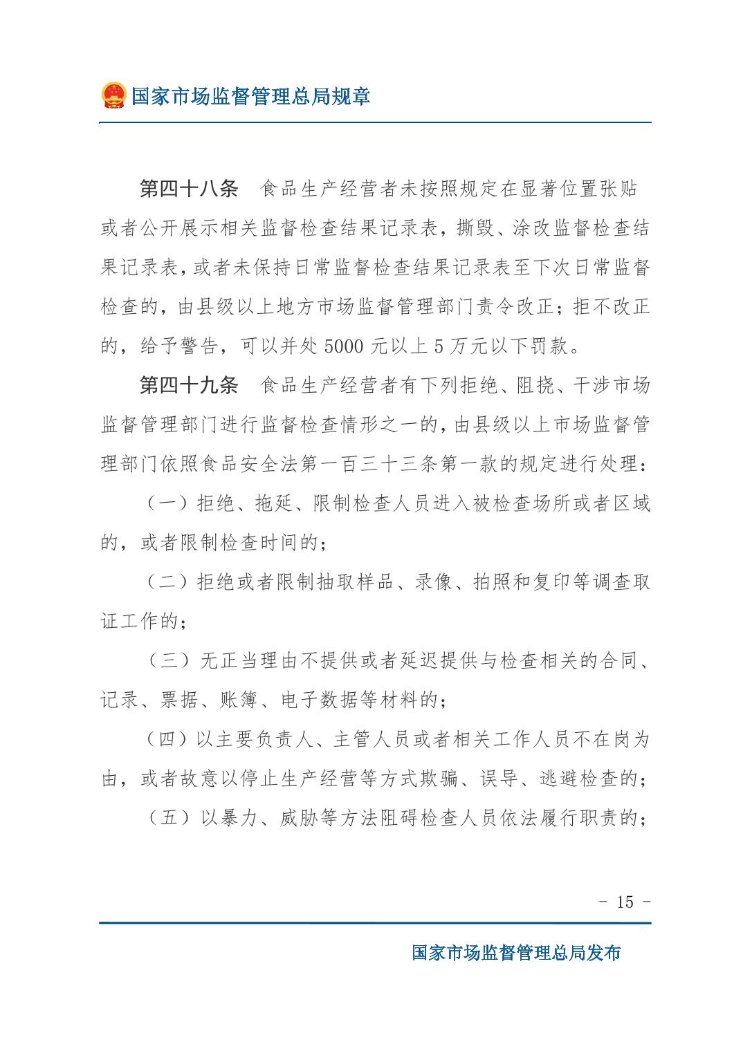《食品生产经营监督检查管理办法》(国家市场监督管理总局令第49号)
