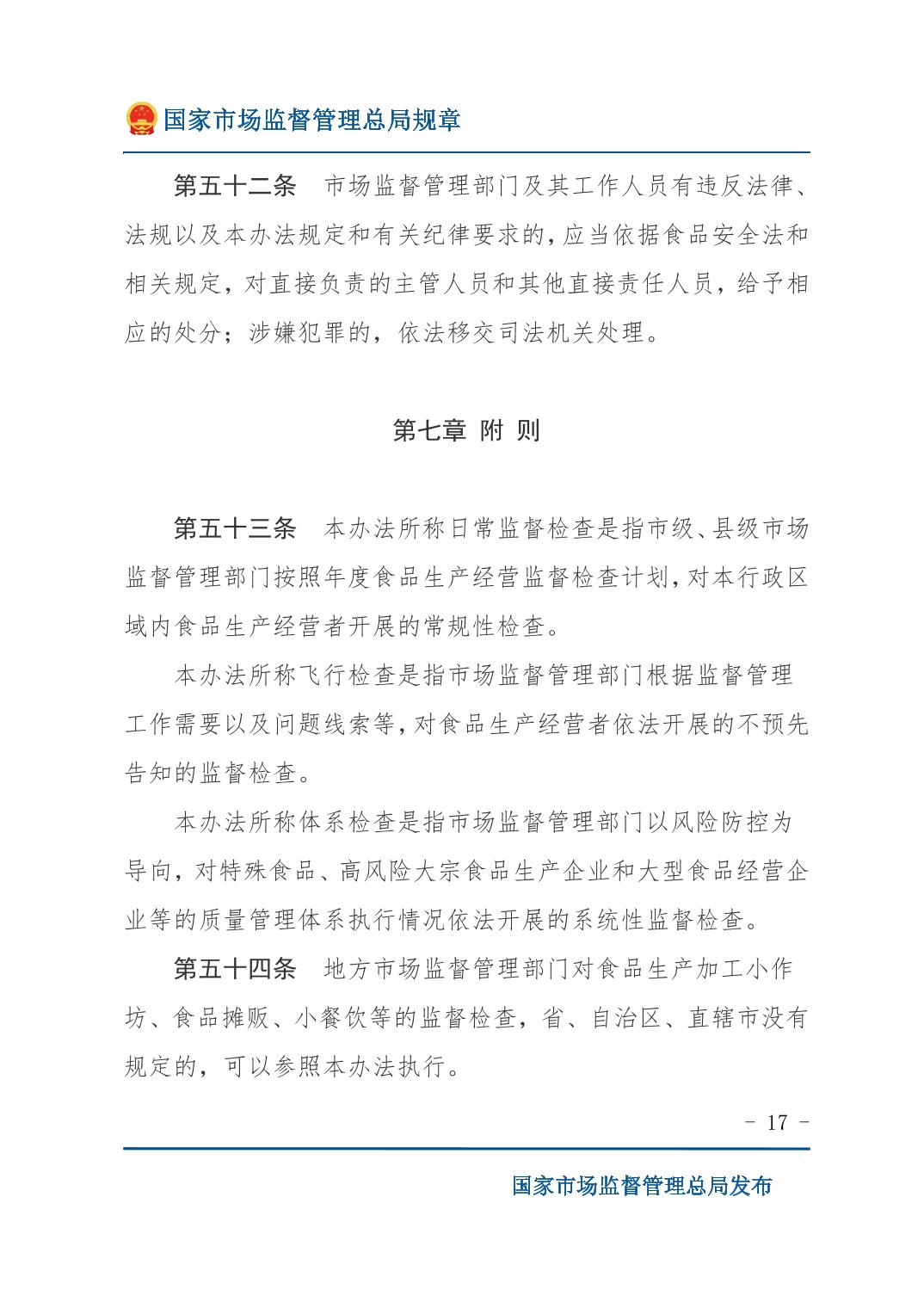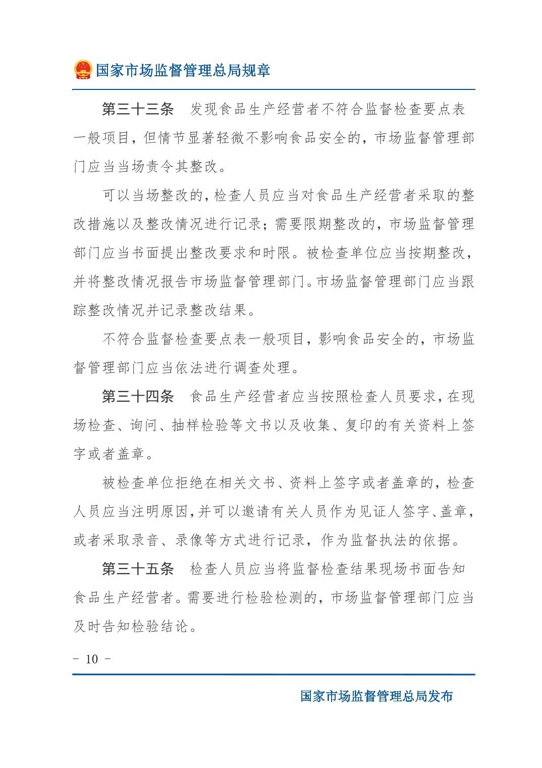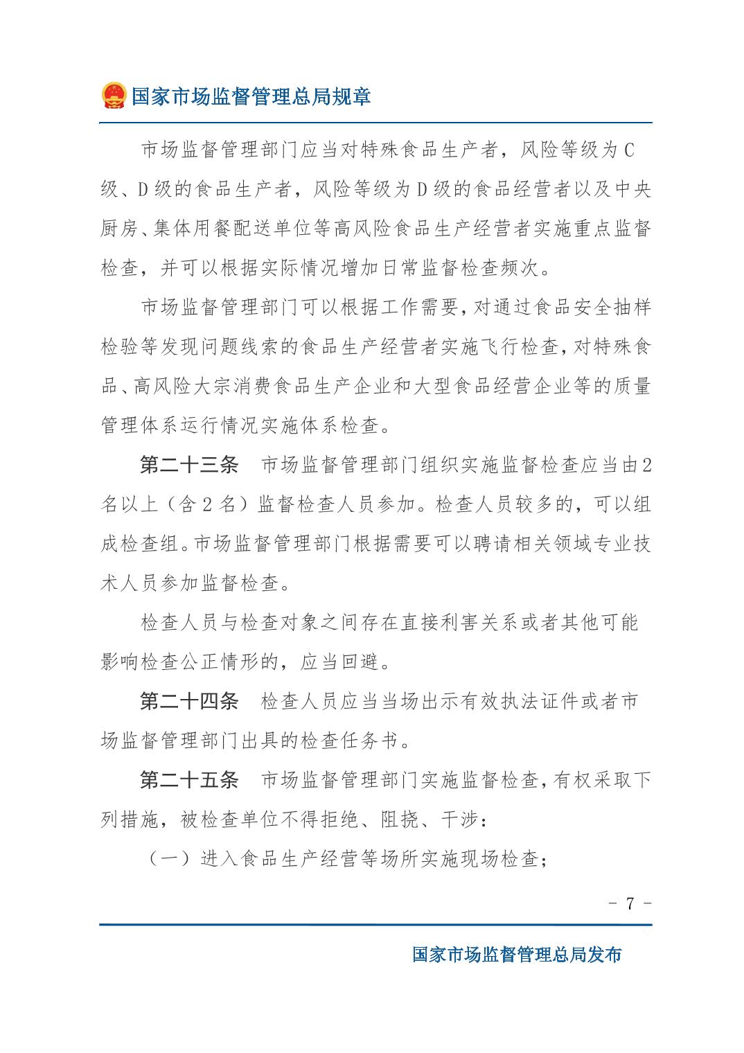 《食品生产经营监督检查管理办法》(国家市场监督管理总局令第49号)