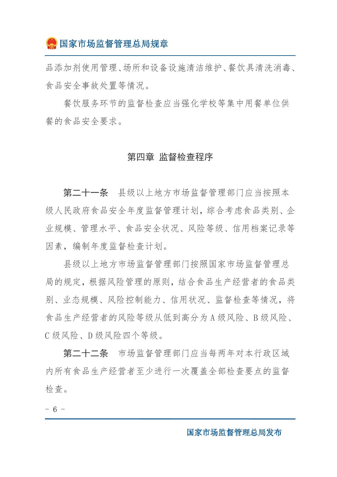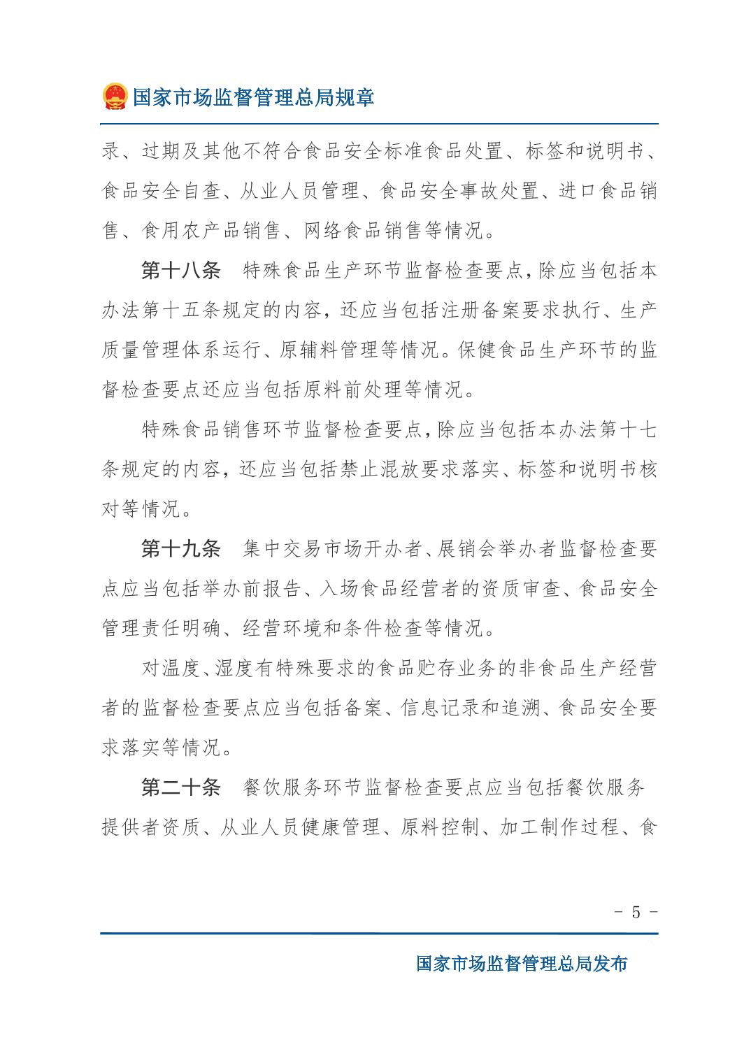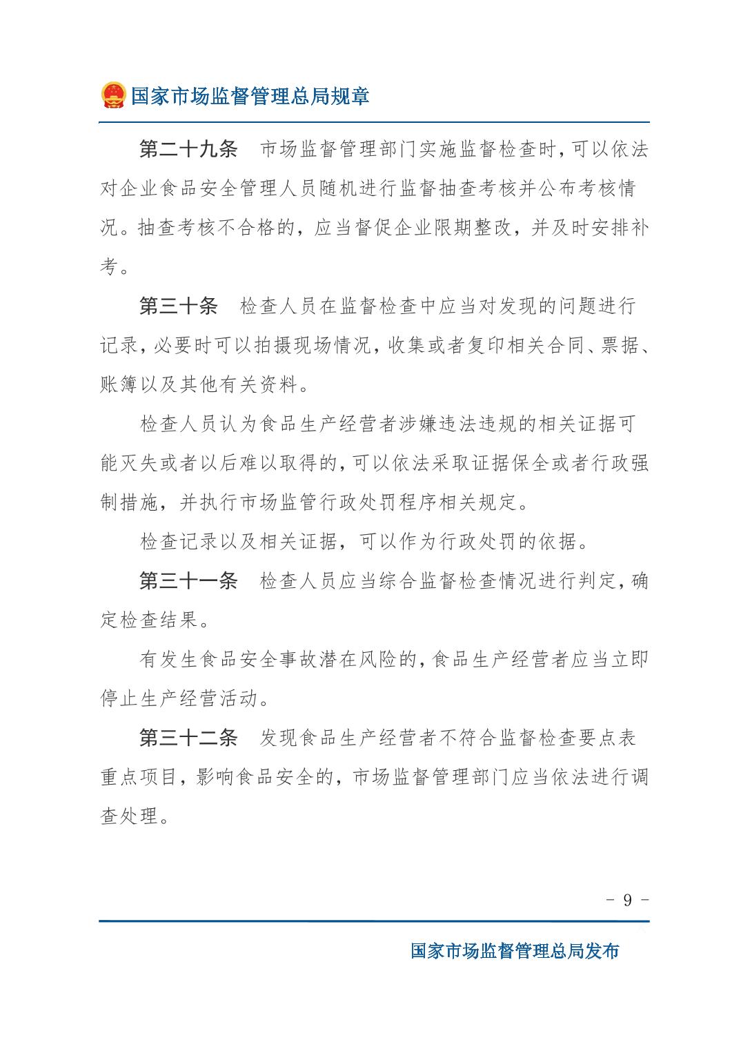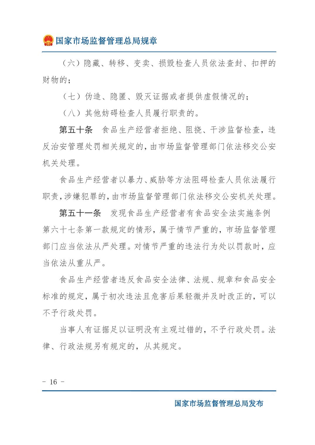 《食品生产经营监督检查管理办法》(国家市场监督管理总局令第49号)