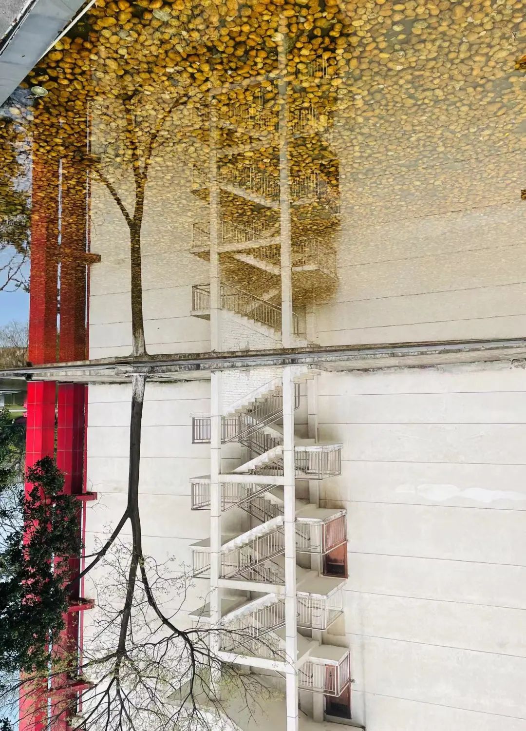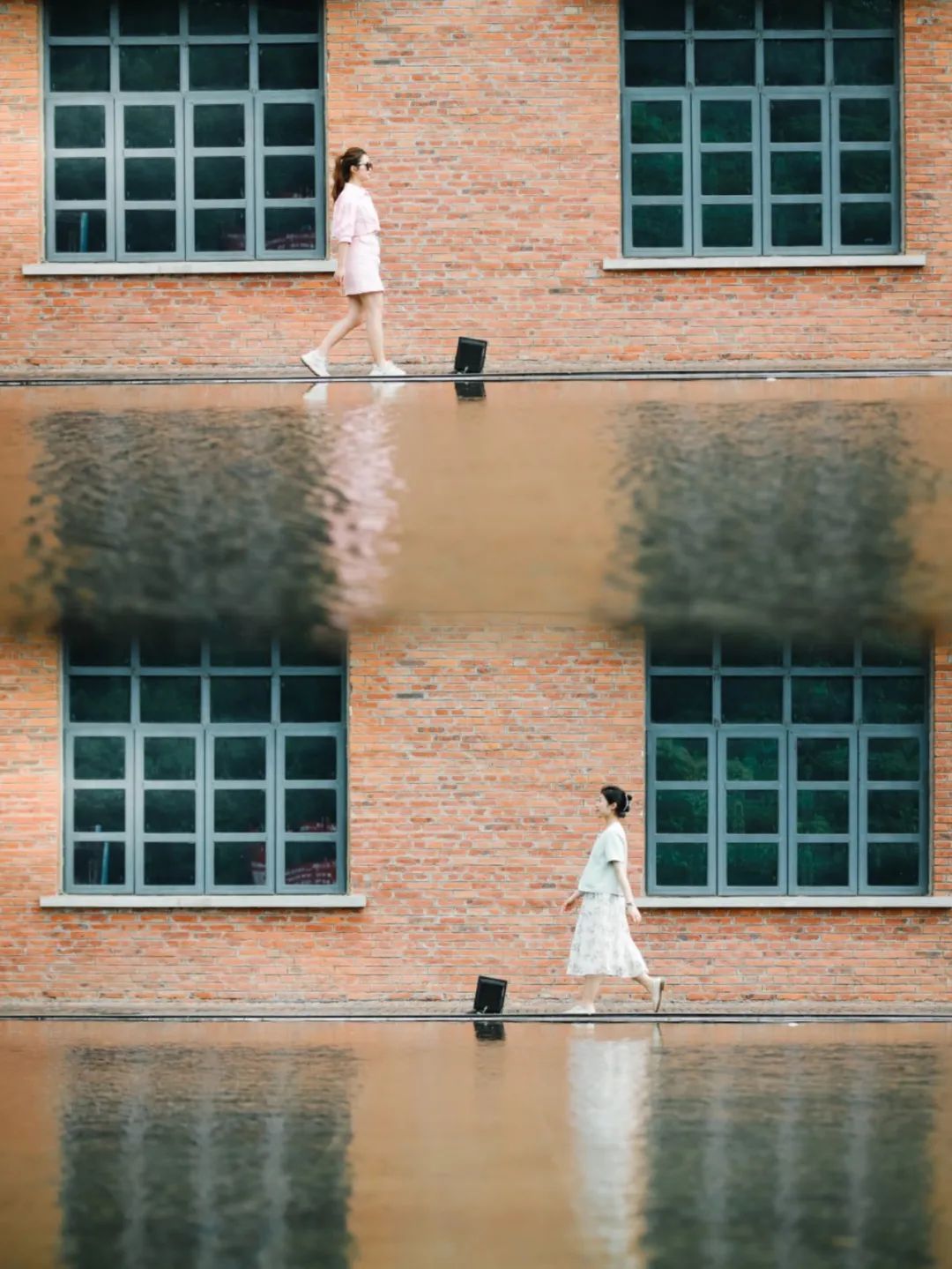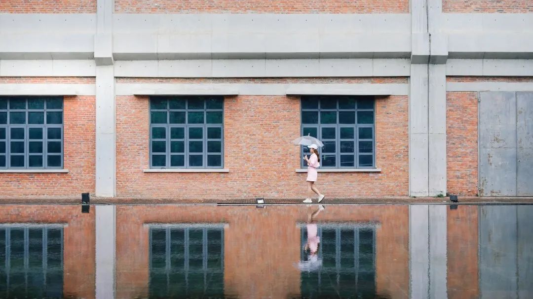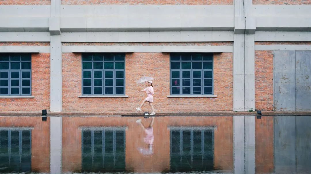 路面水坑的倒影,重点放在水面的倒影上,画面会显得更干净。