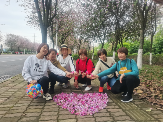 “引客鱼峰 乐在其中”首发旅游团游客在紫荆花树下合影