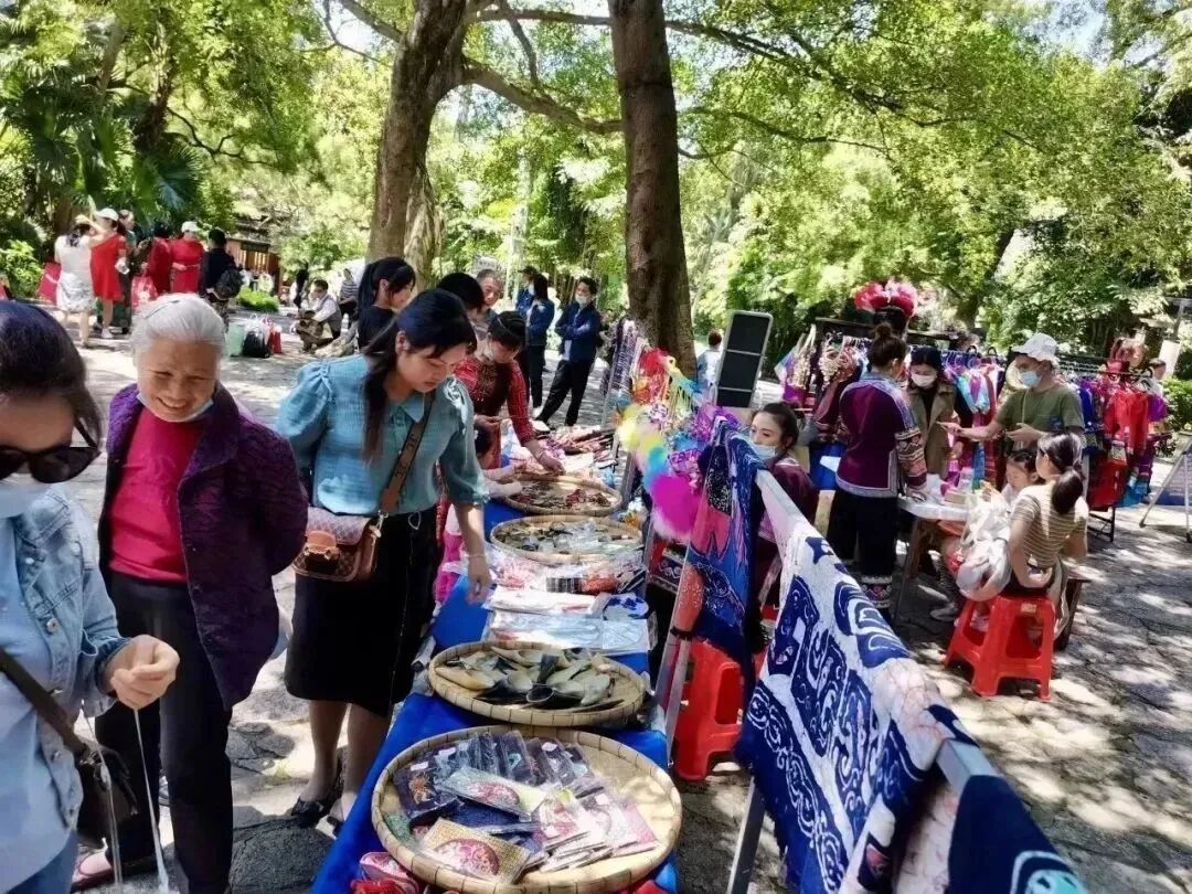 在侗寨民俗集市上品尝民族特色的小吃,选购民俗手工艺品,穿着民族服饰