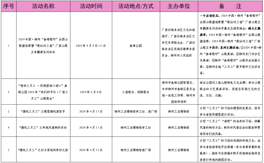 鱼峰区2024年“广西三月三”文化旅游活动安排表