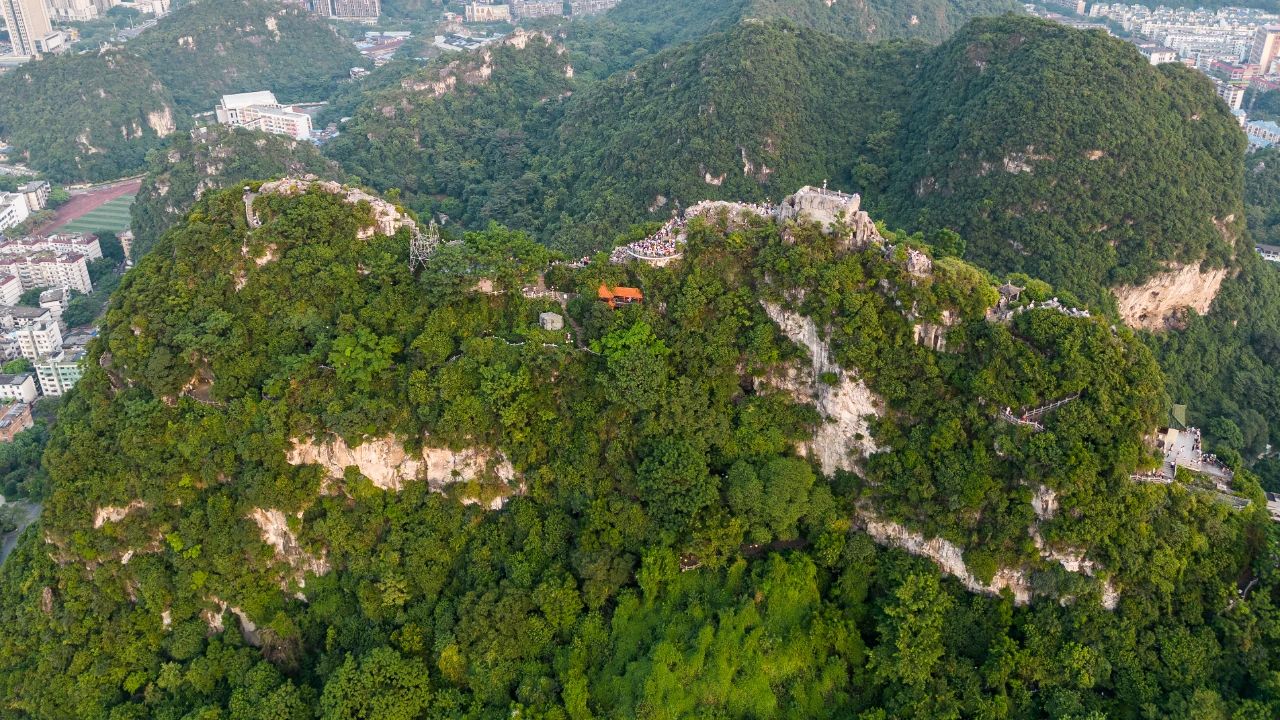 与马鞍山遥相对望的,是立鱼峰风景区。鱼峰山平地孤峰,形如立鱼,山上亭台楼阁遍布,即使夏日登山,也能倍感清凉。