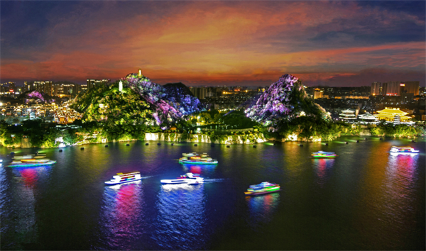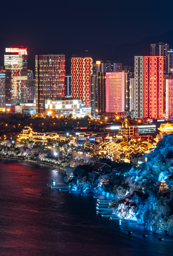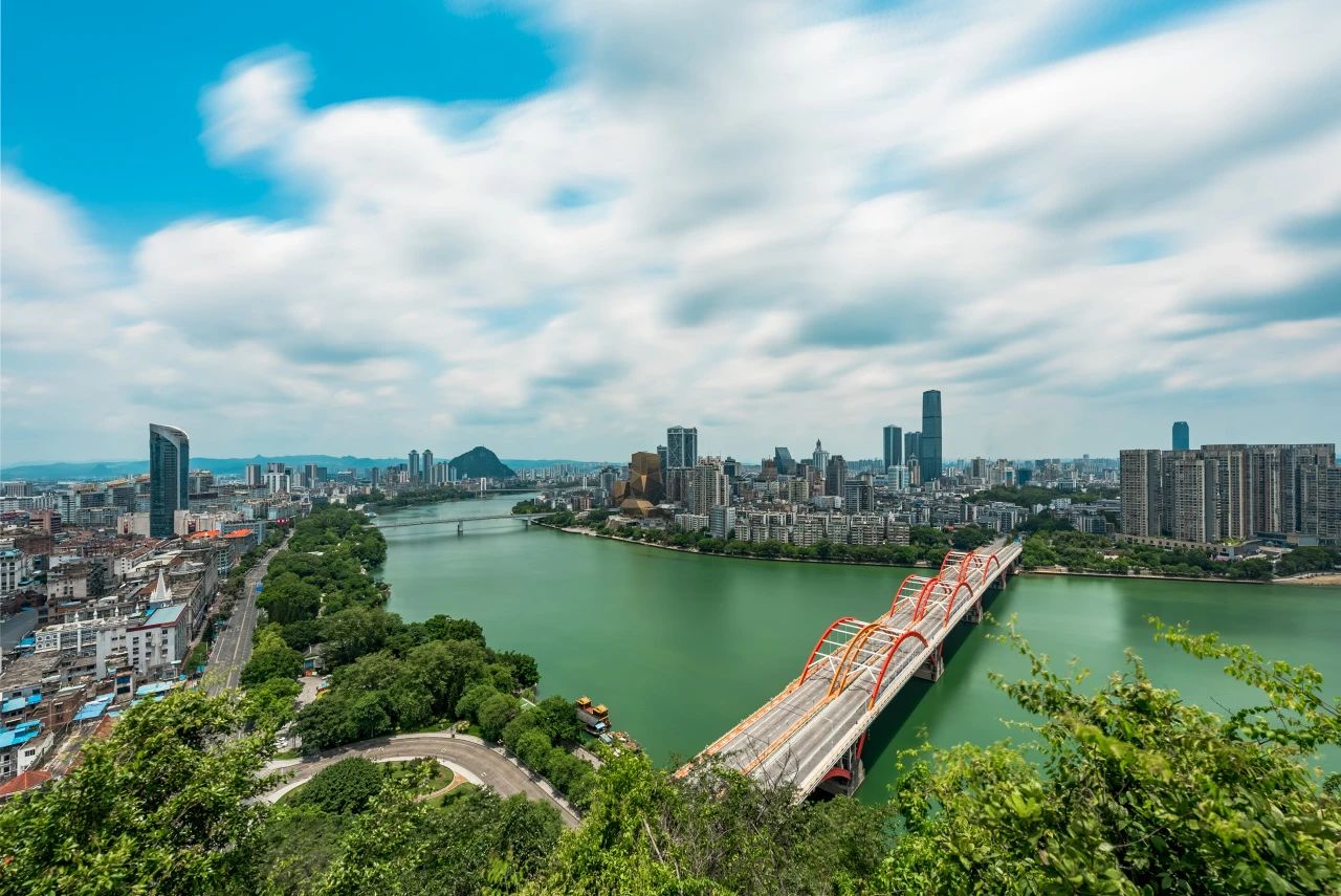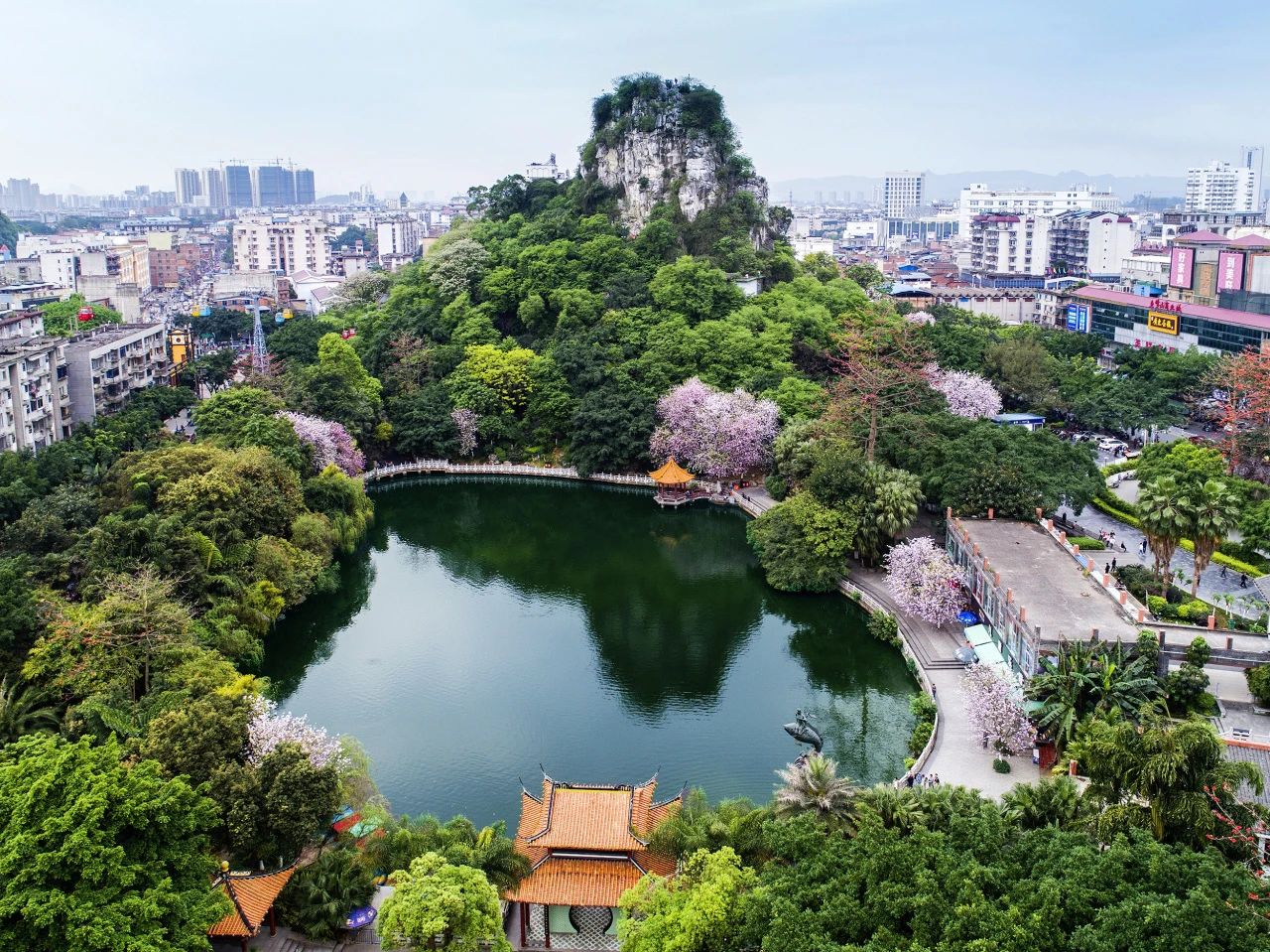 百里柳江沿岸第二亮眼的,莫过于蟠龙山,蟠龙山横列三峰,形如蟠龙,因而得名,是历来文人最为喜爱的柳州风景之一。