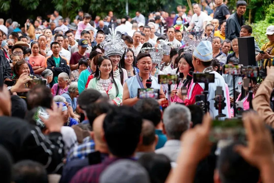 鱼峰山脚下的山歌对唱,吸引了市民和游客。图源:南国今报
