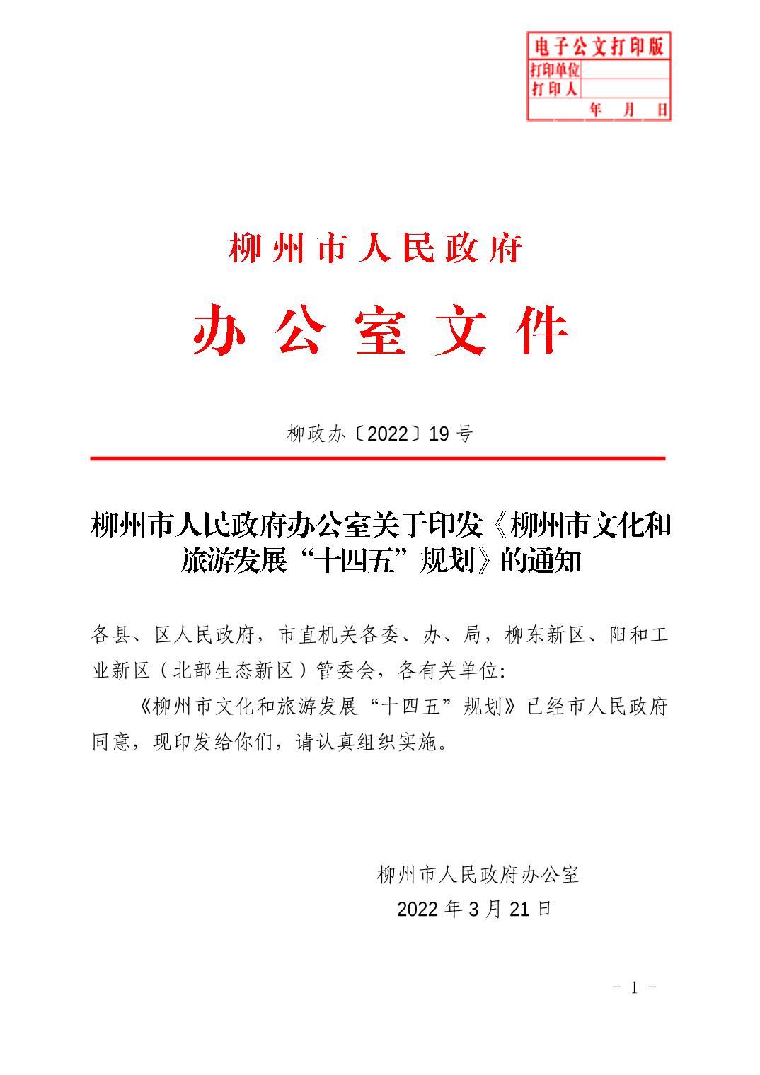 柳政办〔2022〕19号 柳州市人民政府办公室关于印发《柳州市文化和旅游发展“十四五”规划》的通知