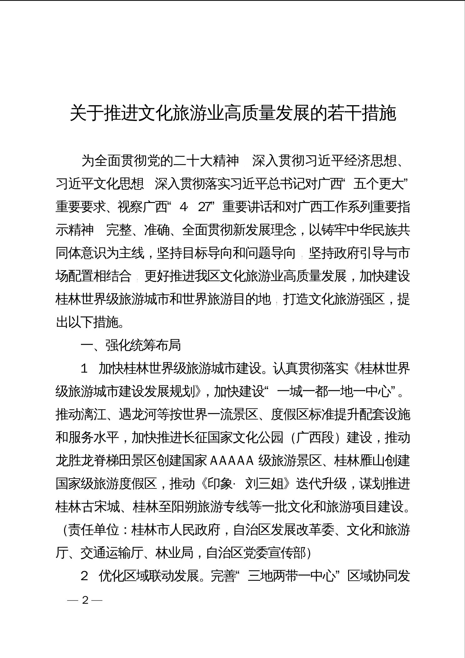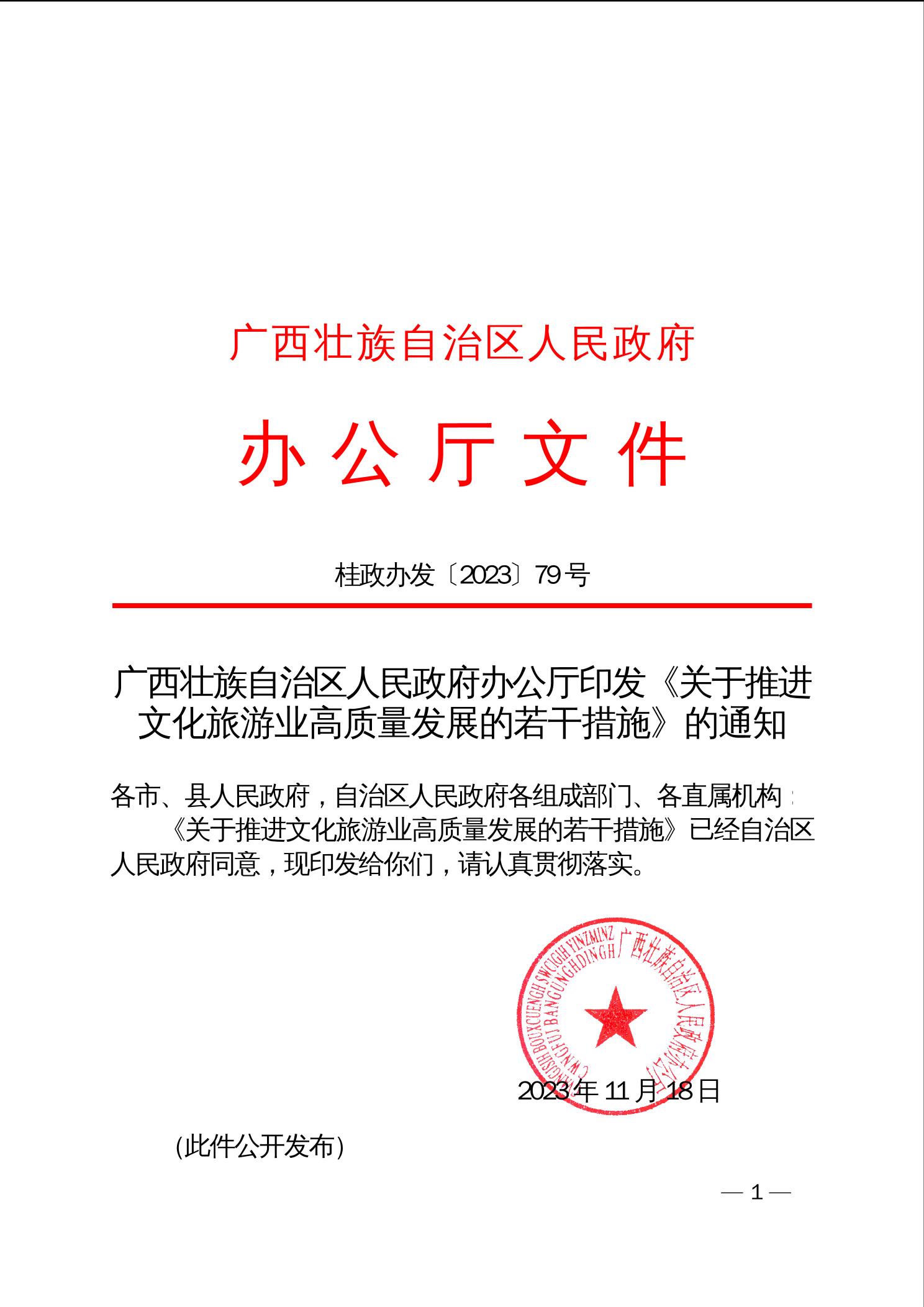 桂政办发[2023 ] 79 号 广西壮族自治区人民政府办公厅印发《关于推进文化旅游业高质量发展的若干措施》的通知