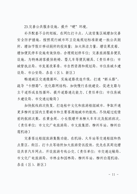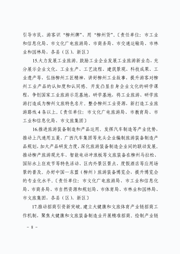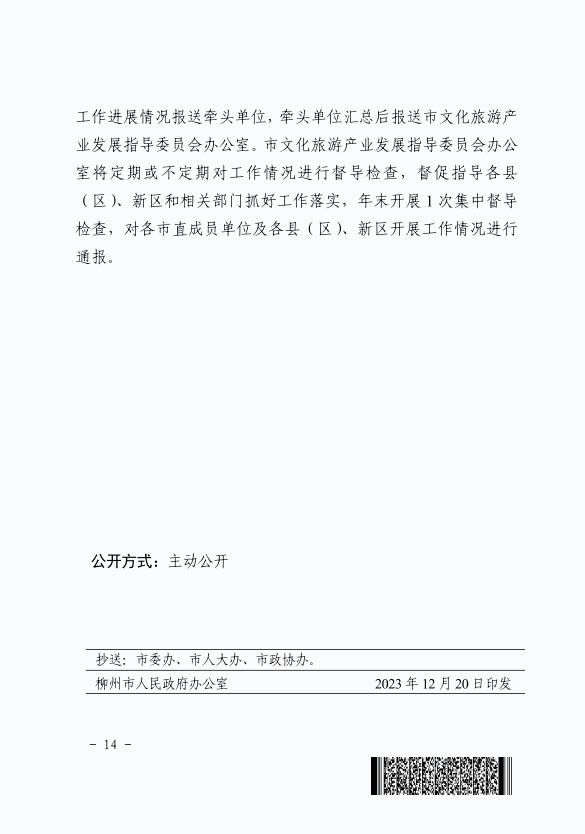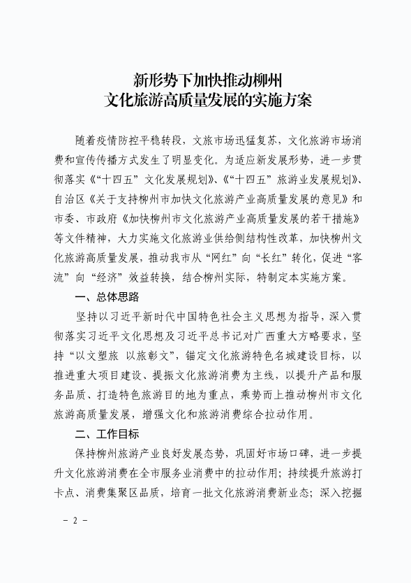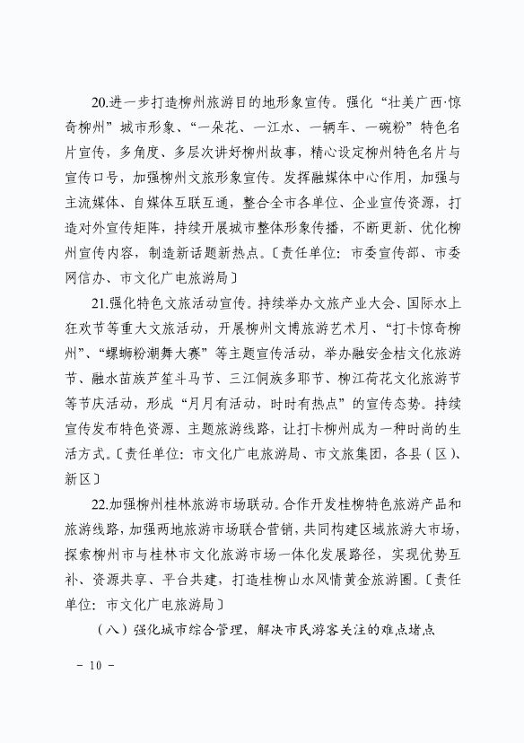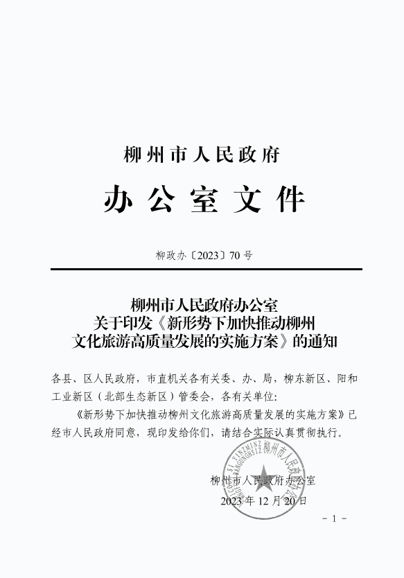 柳政办〔2023〕70号 关于印发《新形势下加快推动柳州文化旅游高质量发展的实施方案》的通知
