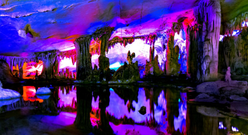 柳州市都乐公园占地135.5公顷,由12座山峰、46个岩洞、长达3.4千米的都乐清溪和3个人工湖组成,集喀斯特溶洞奇观、生态山林景观和佛教文化为一体。主要景点有都乐岩、都乐碑林、开元寺、玉佛殿等。都乐岩由盘龙洞、通天洞和水云洞三个岩洞组成,全长约700m,总面积约7000㎡,溶洞内瑰丽神奇被誉为“大自然奇幻艺术之宫”。