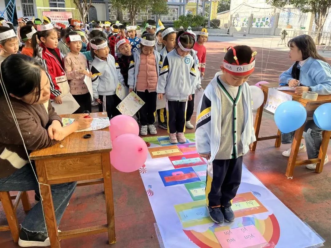 “j,x,y!”学生在 “跳房子”游戏中,大声读出第一格中贴着的拼音并向前跳了一步。驾鹤路小学教育集团乐群、银桐两个校区上演了一场有趣且富有创意的“乐学”拼音大闯关活动,学生们踊跃中收集印章,争当“拼音闯关王”。这是学校“作业改革”的一次尝试,以学科融合的方式将语文、美术、体育、劳动等学科教育进行了有机结合,学生们在学中玩,在玩中巩固提高。