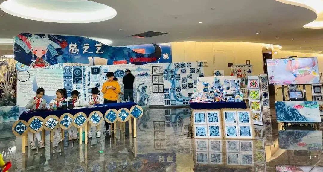 例如学校以“鹤之艺”染纸艺术工作坊为平台,在全校范围内极力推广《基于本土文化资源的美术单元化课题研究》成果,设计安排了以“走进非遗文化”为主题的扎染艺术——染纸活动,学生每学期会有2到3节课的染纸专项体验学习。学校还根据各个年级学生的学习能力,结合信息、科学等学科,开展电脑绘画和科幻画教学。