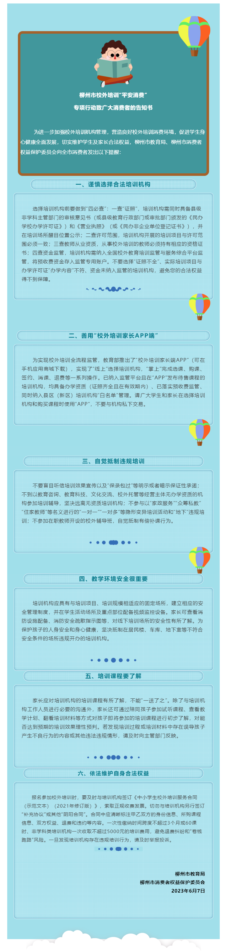 @家长,给孩子报校外培训班前,请查阅这份柳州市校外培训“平安消费”专项行动告知书