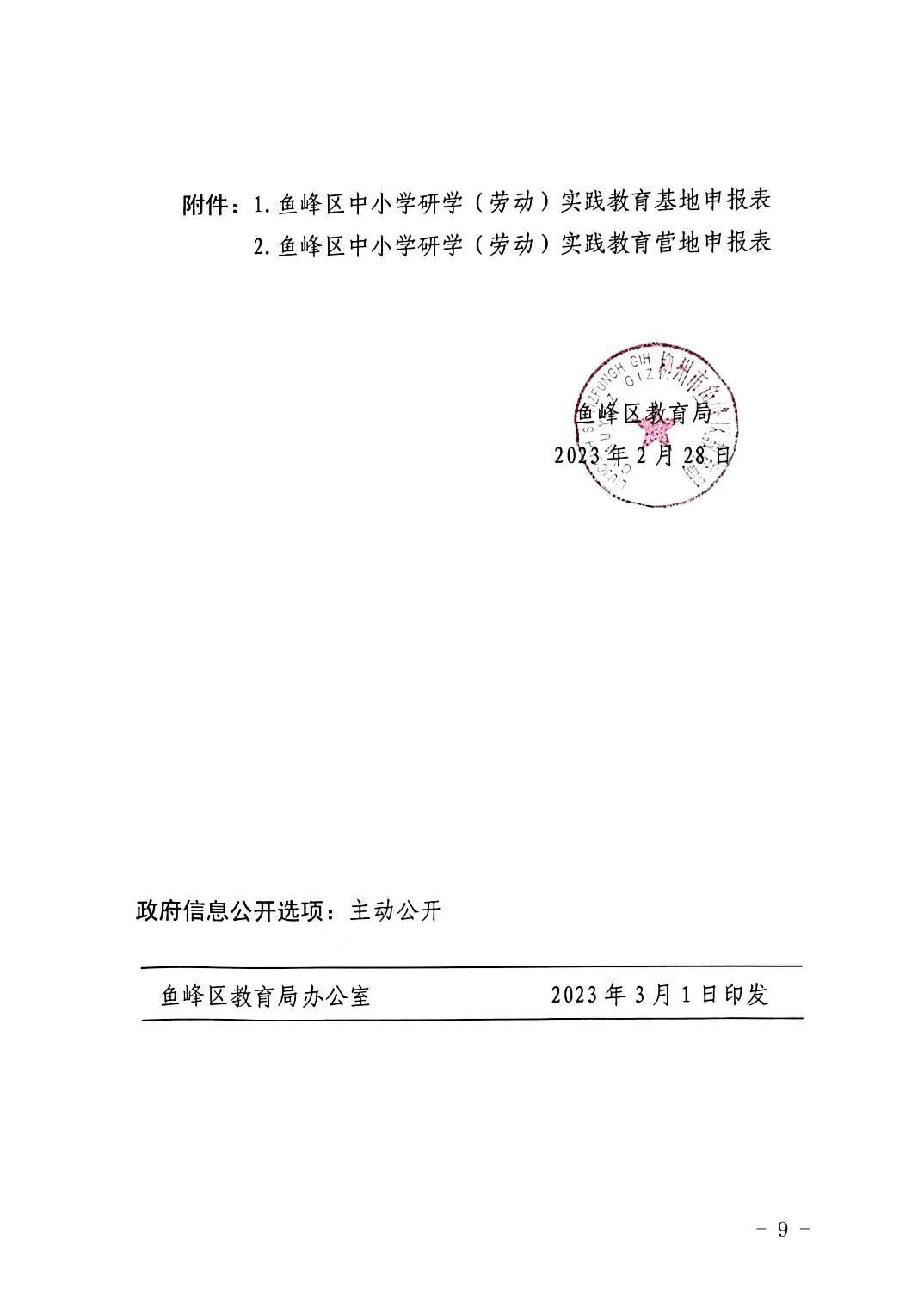 鱼教发〔2023〕1号 鱼峰区教育局关于开展2023年第一批鱼峰区中小学研学 (劳动)实践教育基地(营地)遴选的通知(征求意见稿)