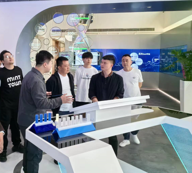 4月17日,考察团前往霸王茶姬和上海市智算中心考察。2023年,霸王茶姬通过新潮的产品供应、优秀的文创产品设计,智能化的门店管理实现日活跃用户量8000万人次,年营业额150亿元。双方就下一步深化产品创新研发,力争打造“茶饮文化+螺蛳粉”组合网红产品,同时在深化原材料种植、供应合作方面交换了合作意见。