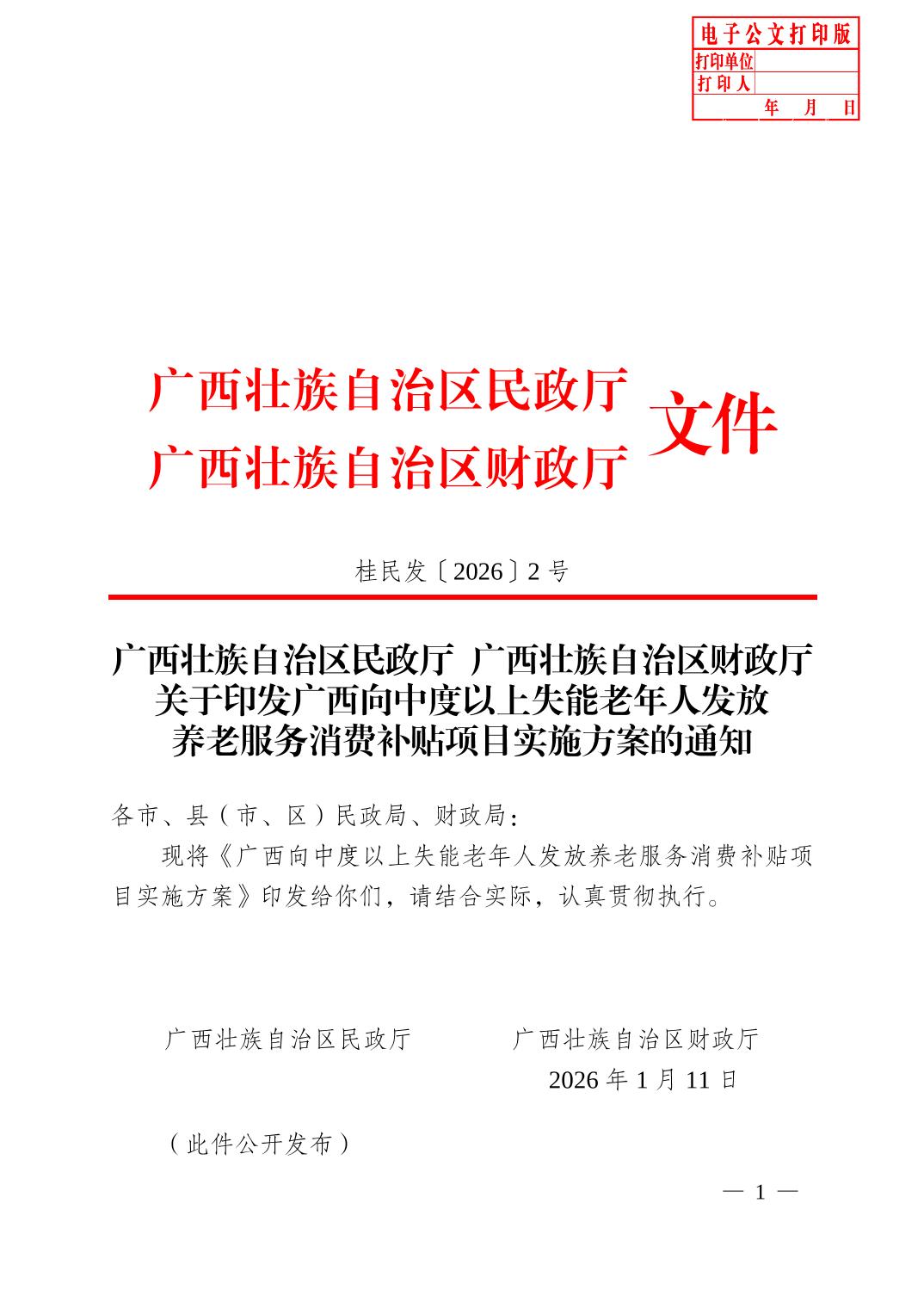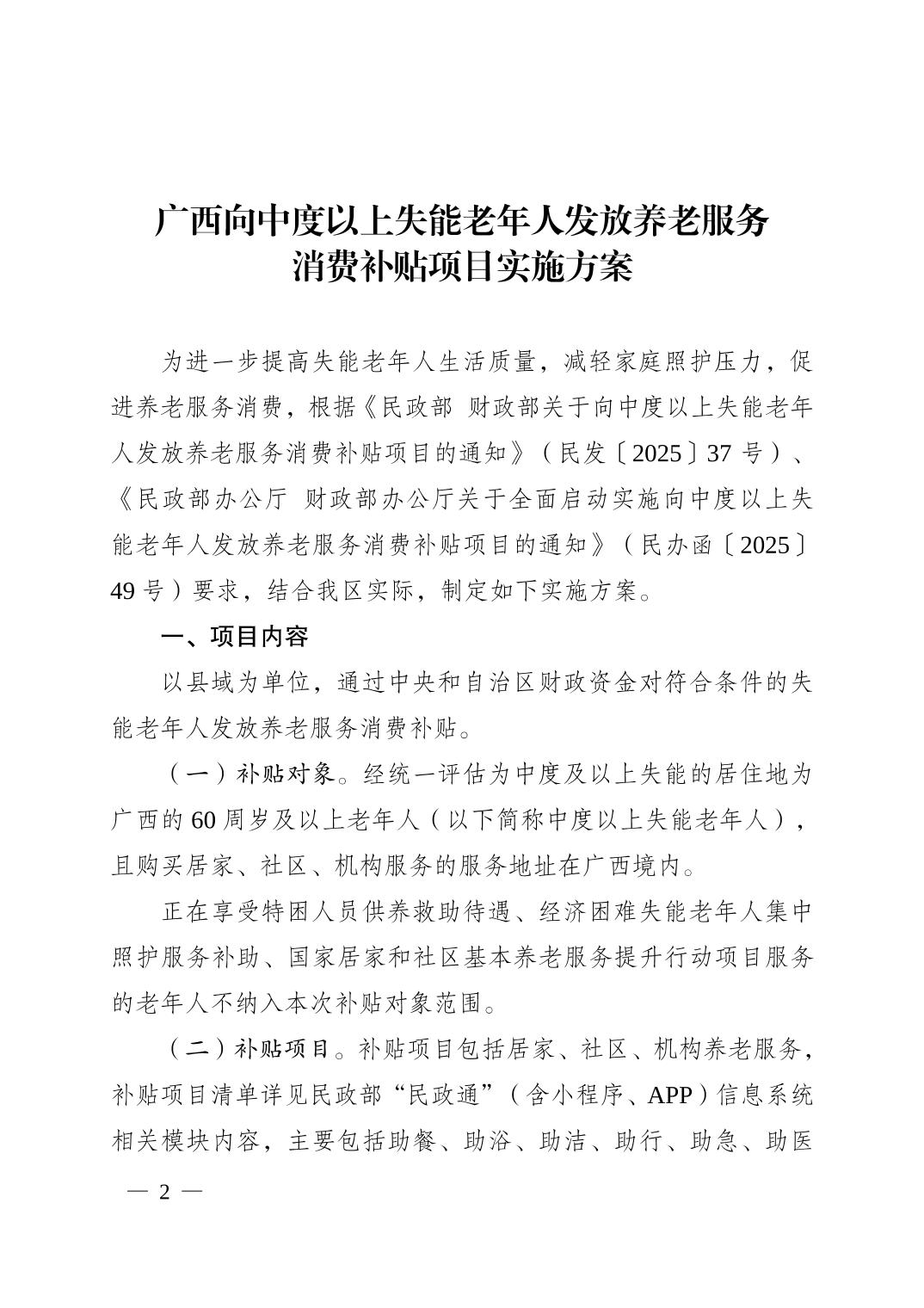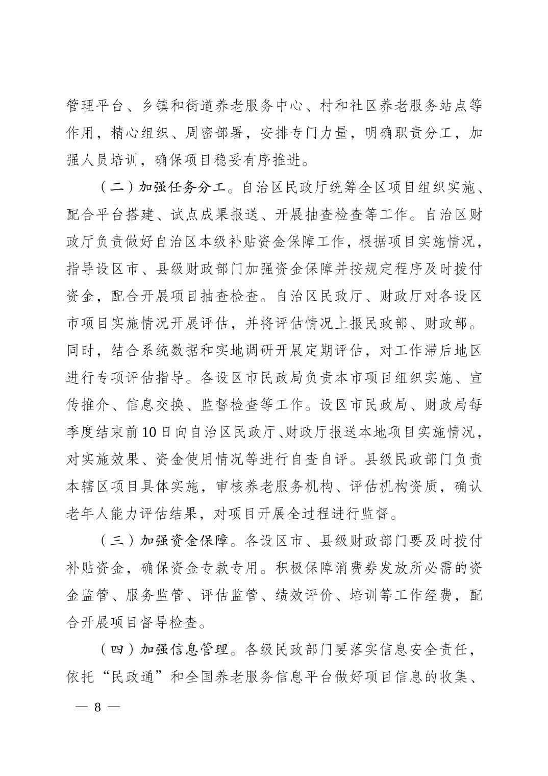 广西向中度以上失能老年人发放养老服务消费补贴项目实施方案的通知