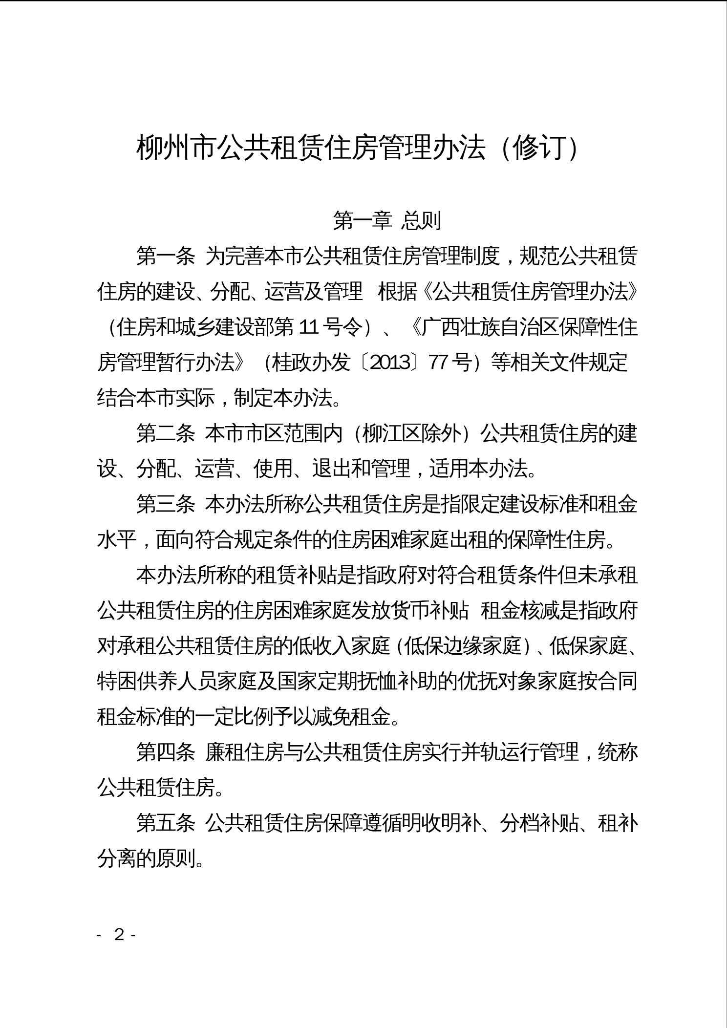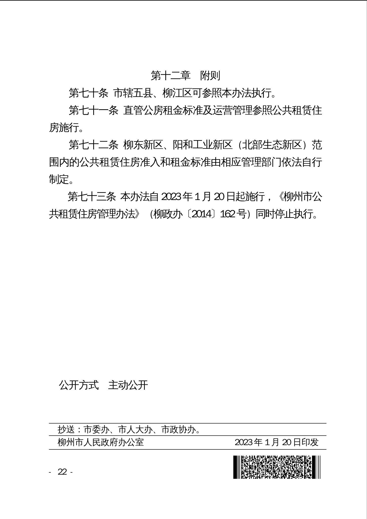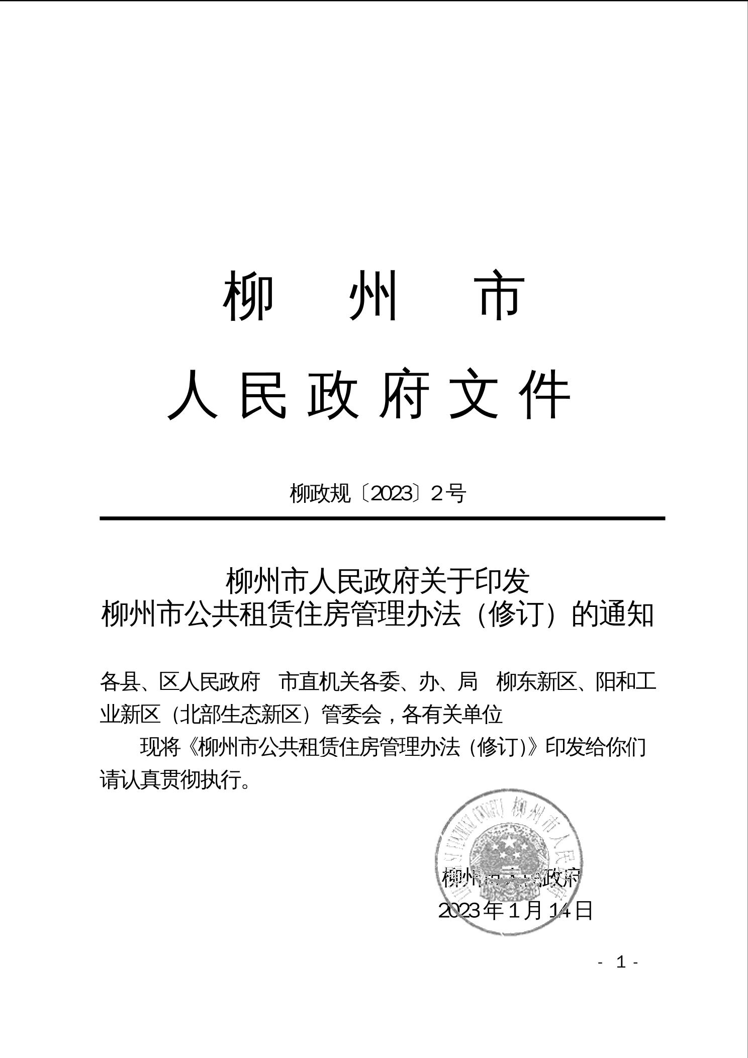 柳政规〔2023〕2号 柳州市人民政府关于印发柳州市公共租赁住房管理办法(修订)的通知